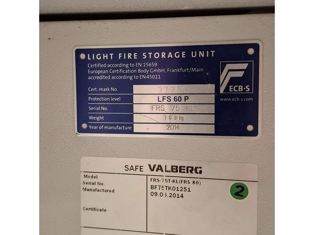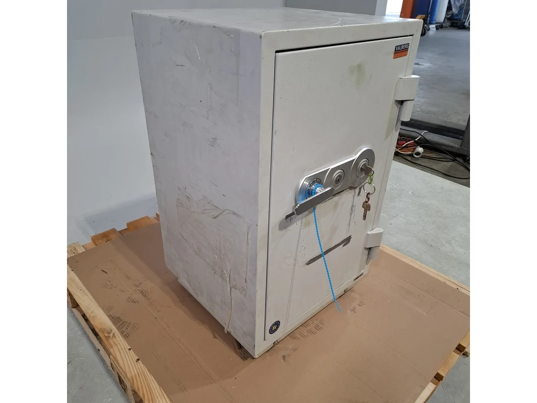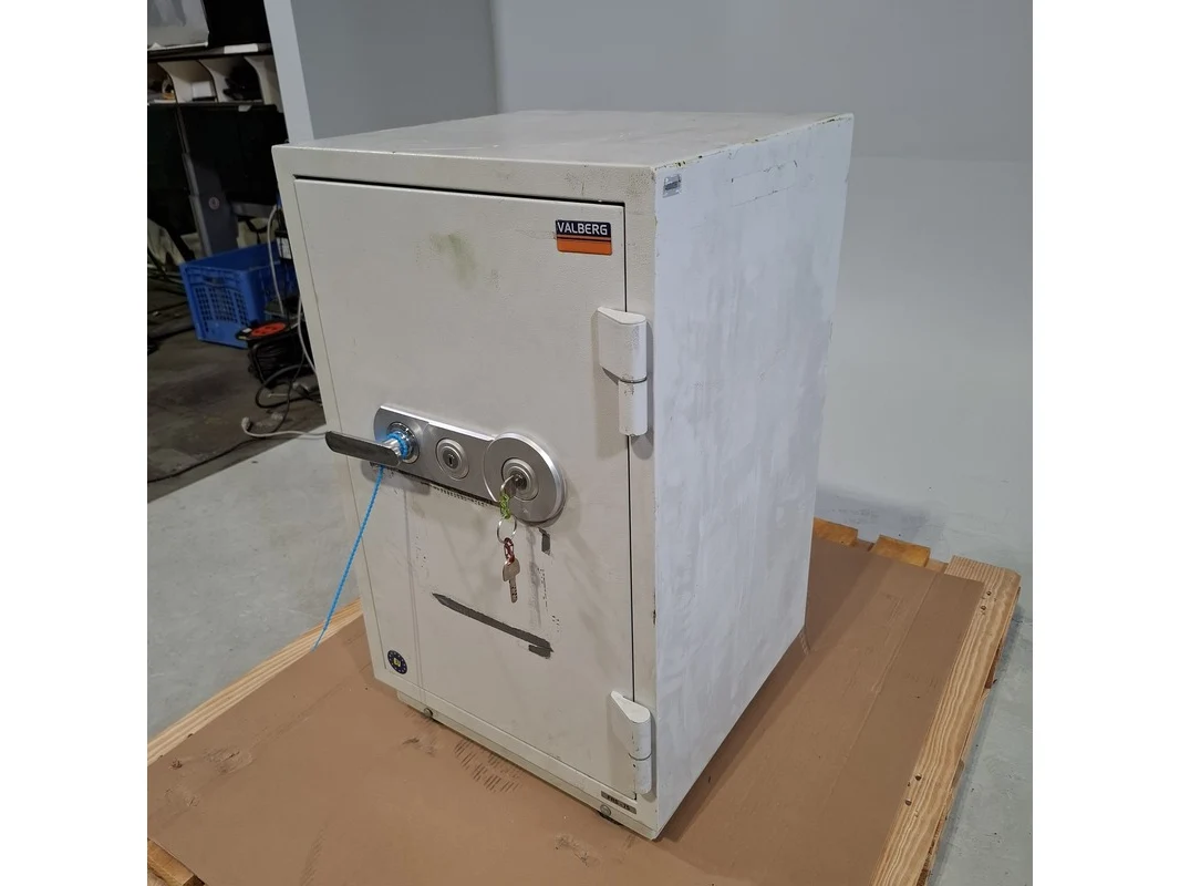Merk: Valberg Product: Kluis Afmeting: hxbxd ca. 80x49x45 cm. BouwJaar: 2014 Conditie: gebruikt Specificaties: Inclusief sleutel. Diverse beschadigingen en gebruikssporen. Exclusief pallet.