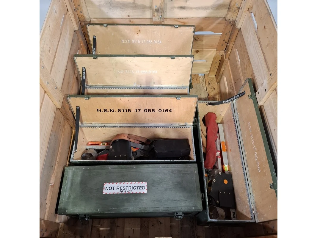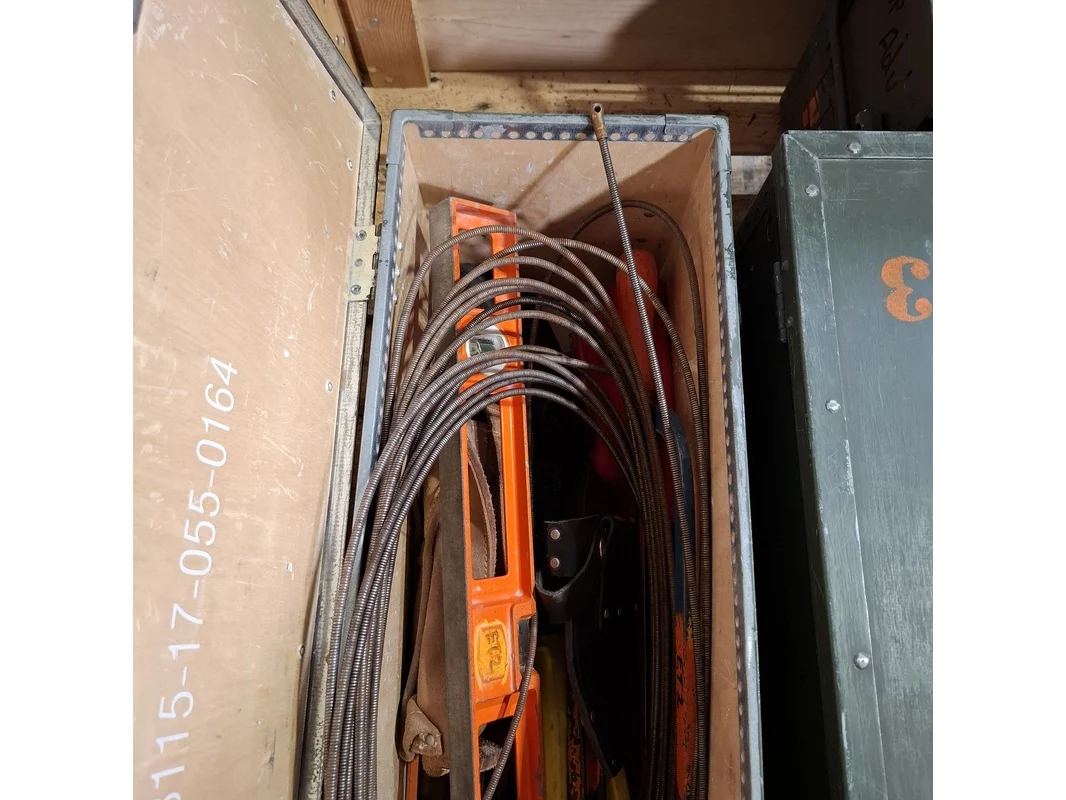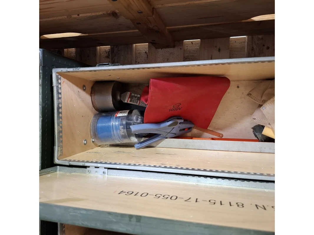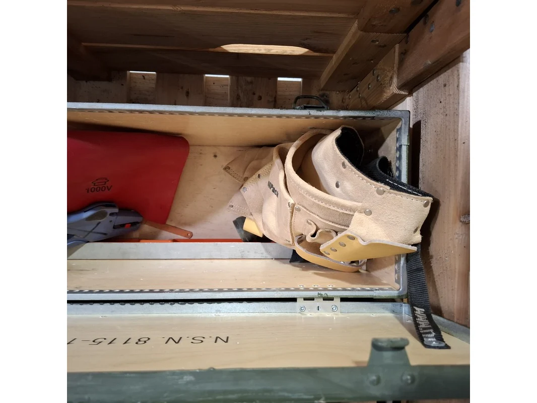 Product: Gereedschapskoffer met inhoud Conditie: gebruikt Specificaties: Bestaande uit o.a. zaklamp, waterpas, zagen, trekveer etc. Technische staat en compleetheid onbekend. Exclusief palletkist.