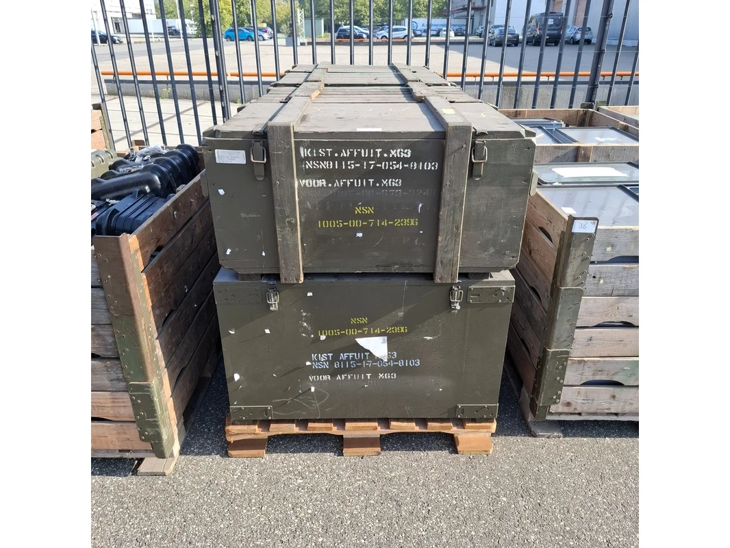 Product: Transportkist Afmeting: o.a. hxbxd ca. 49x95x60 cm. Conditie: gebruikt Specificaties: Technische staat en compleetheid onbekend. Exclusief pallets.