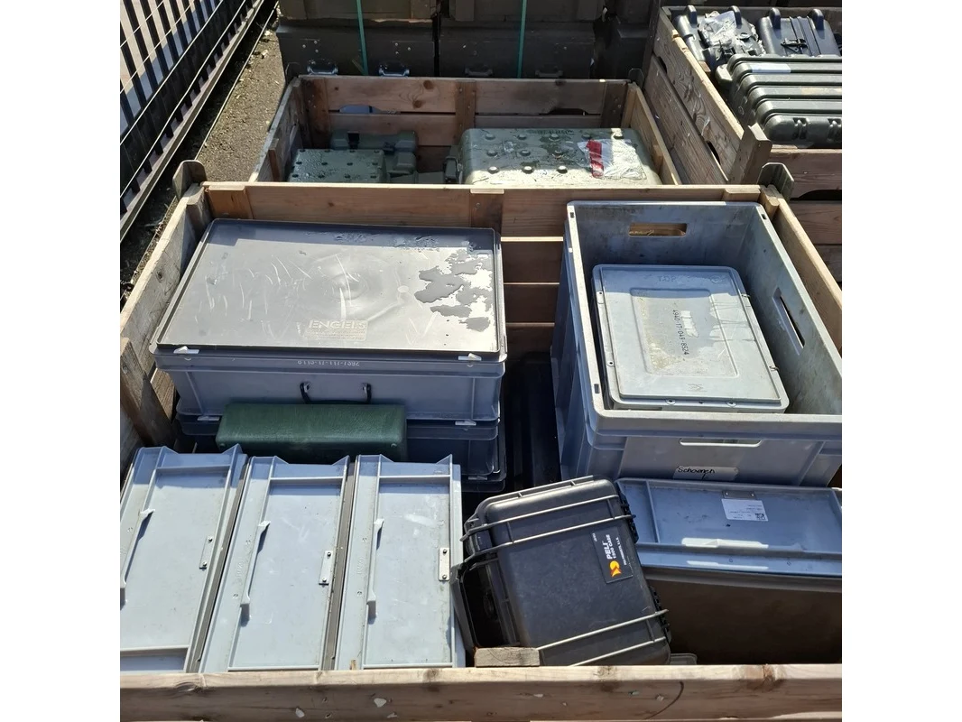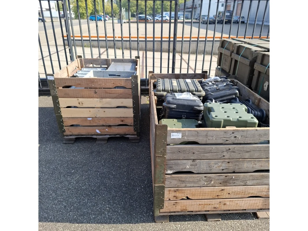 Merk: o.a. Peli, Engels Product: Partij diverse transportkisten en koffers Afmeting: o.a. hxbxd ca. 20x60x40 cm. Conditie: gebruikt Specificaties: Technische staat en compleetheid onbekend. Exclusief palletkisten.