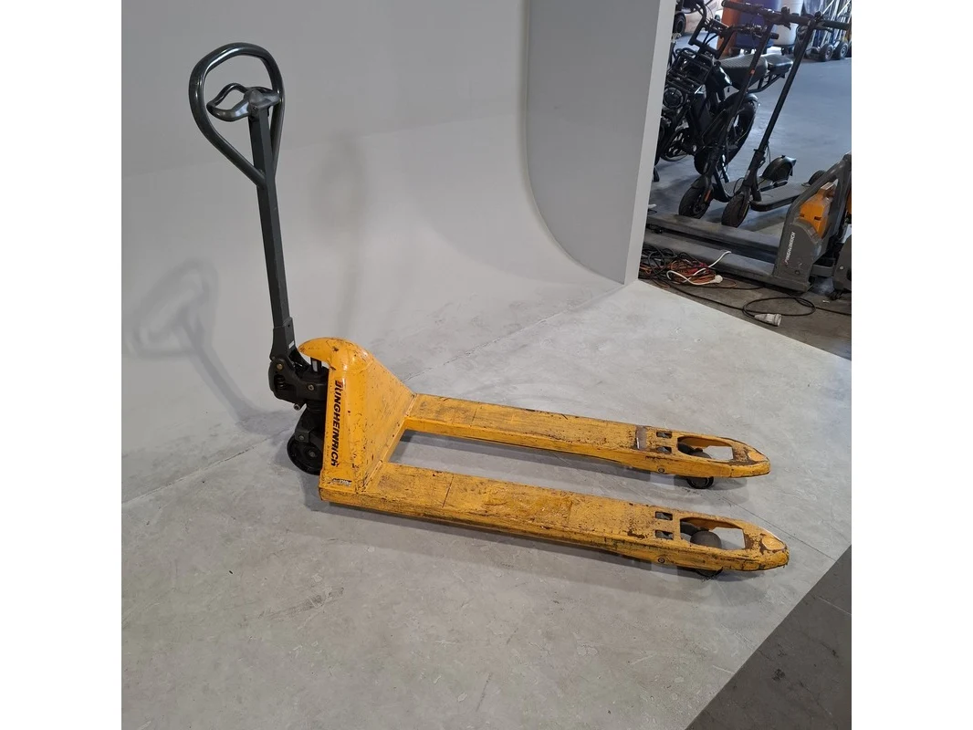 Merk: Jungheinrich Product: Palletwagen Afmeting: Lepellengte ca. 115 cm. BouwJaar: 2011 Conditie: gebruikt Specificaties: Max. 2200 Kg. Eigen gewicht ca. 63 Kg. Technische staat en compleetheid onbekend.