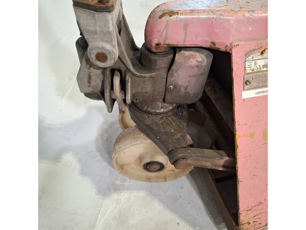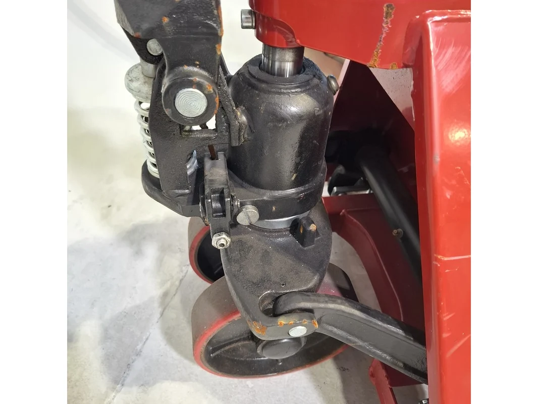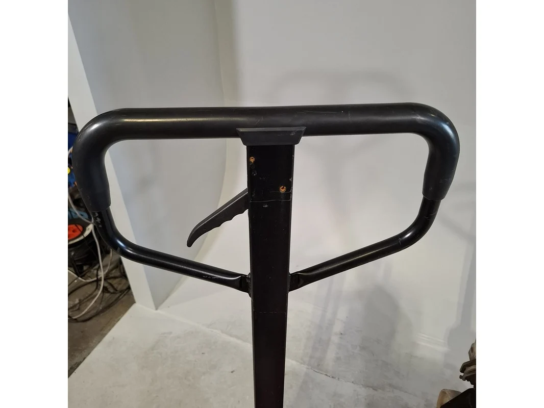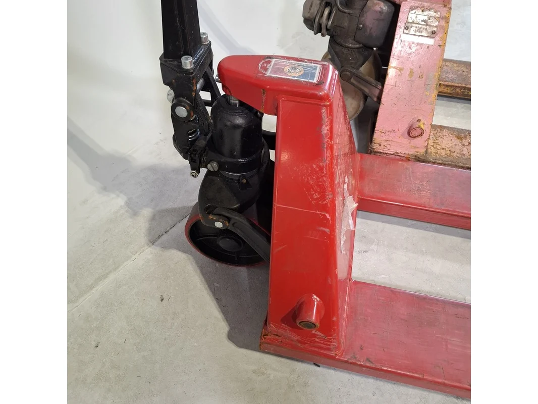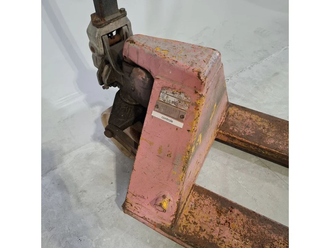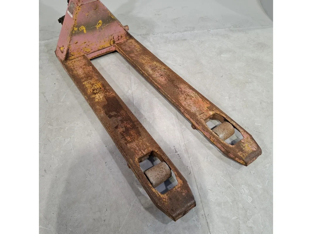 Product: Palletwagen Afmeting: Lepellengte ca. 115 cm. Conditie: gebruikt Specificaties: 1x palletwagen Typeplaat niet leesbaar Heft en zakt niet Technische staat en compleetheid onbekend. 1x palletwagen Typeplaat ontbreekt Max. 2500 Kg. Lepels krom Technische staat en compleetheid onbekend.