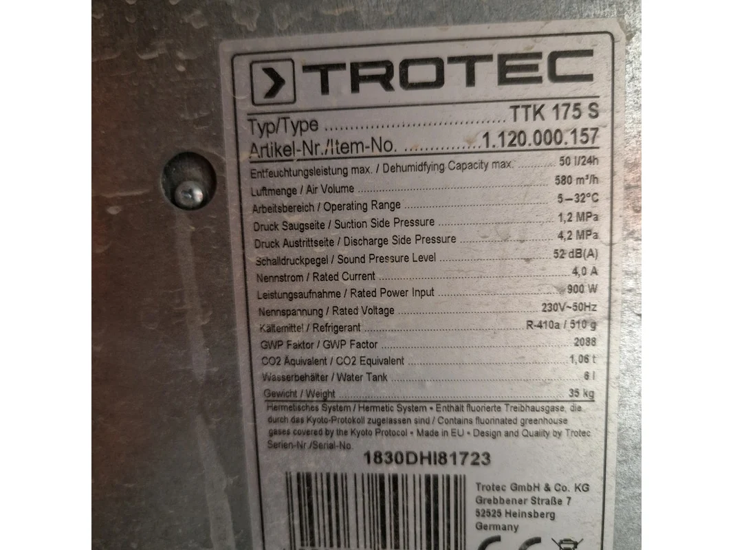 Bouwdroger - 50l - 230v trotec, ttk 0175 s, bouwjaar 2018