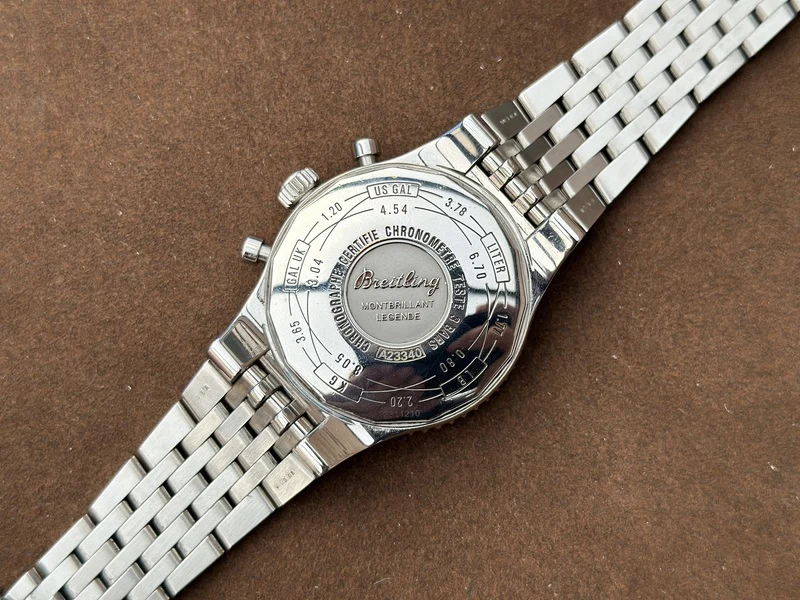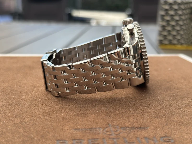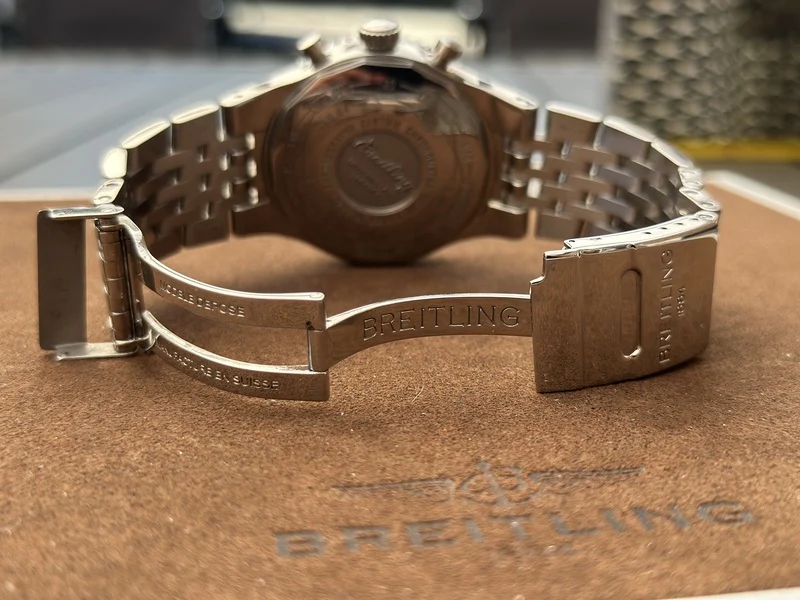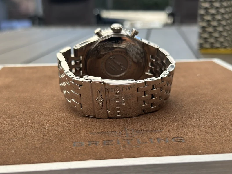 Merk: Breitling Product: Horloge Kleur: Staal Materiaal: Staal Afmeting: 47mm Conditie: Gebruikt Specificaties: Breitling Montbrilliant Legende. Volledig functioneel. Horloge heeft een Bruine wijzerplaat. Het horloge is in zeer goede conditie en vertoont alleen zeer kleine krasjes op bepaalde plaatsen op de horloge band. Automatisch uurwerk met chronograaf. De band is lang en goed voor alle polsmaten. Geïntegreerde stalen horlogeband. Referentie: A23340 Geschatte bouwjaar: 2010 Diameter van het horloge: 47mm Toebehoren: Originele doos met om doos en hanger
