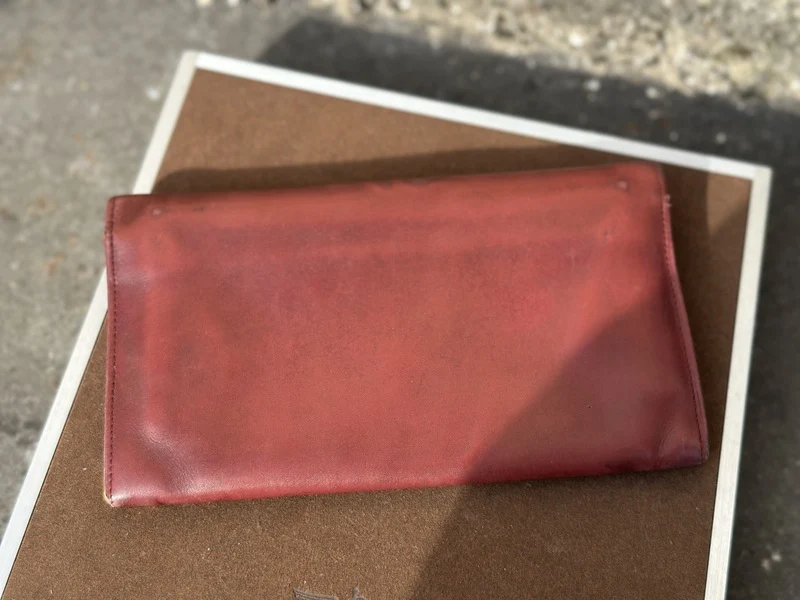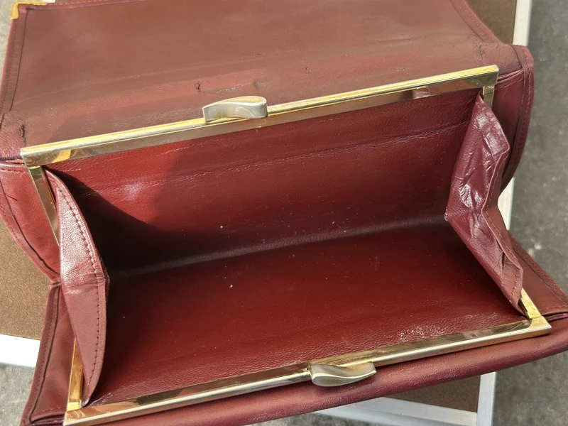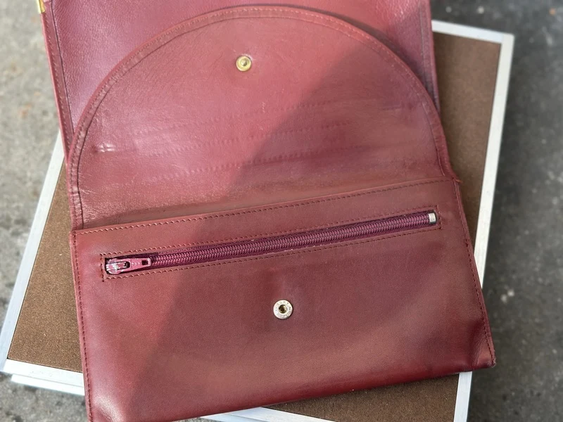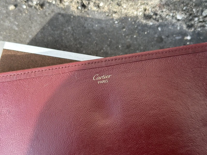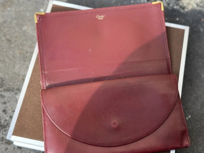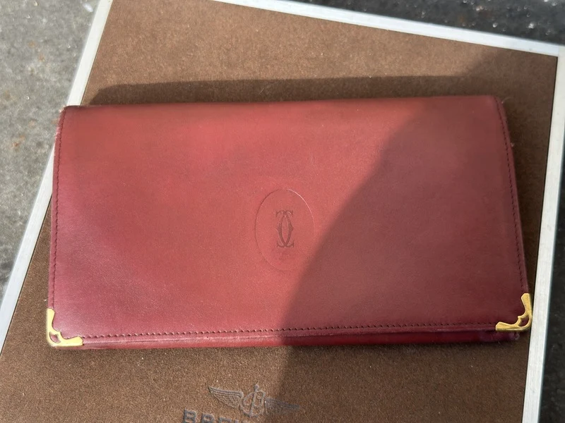 Merk: Cartier Product: Portemonnee Kleur: Bordeax Materiaal: Leer Conditie: Gebruikt