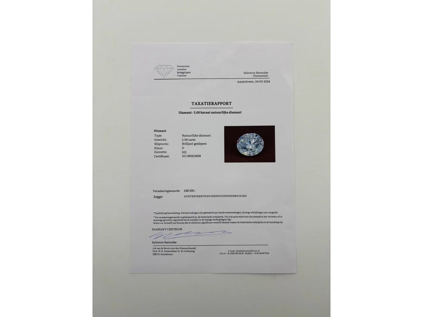 Product: Natuurlijke diamant - 2.00ct ( IGI Gecertificeerd ) Materiaal: Diamant Afmeting: 2.00 karaat Conditie: Nieuw Specificaties: Type: Natuurlijke diamant Gewicht: 2.00 karaat Slijpvorm: Briljant geslepen Kleur: D Zuiverte: SI2 Certificaat IGI