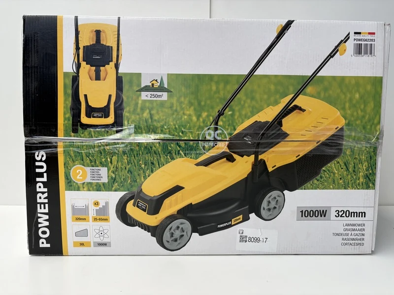 Merk: Powerplus Product: Grasmaaier 220V Specificaties: Grasmaaier 220V, 32cm. 1000W