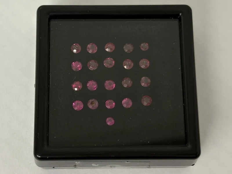Product: Edelsteen - 2.03 carat natuurlijke robijn Specificaties: Edelsteen: Robijn Aantal: 21 stuks Slijpvorm: Rond Gewicht (carat): 2.03 carat Kleur: Rood Zuiverheid: Natuurlijke insluitsels Slijpkwaliteit: Goed Verpakking: Edelsteendoosje Toelichting: De kwaliteit is overgenomen van het rapport behorend bij item. De waardebepaling is een beoordeling van een gecertificeerde diamantair, gebaseerd op consumentenprijzen. Consumentenprijs: € 2.640,-