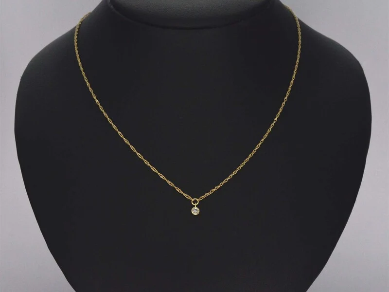 Product: Geelgouden collier met diamant Specificaties: Diamant: Natuurlijk Slijpvorm: Briljant geslepen Gewicht (carat): 0.05 carat Kleur: F-G Zuiverheid: SI-P Slijpkwaliteit: Zeer mooi Juweel: Halsketting Gewicht: 1 gram Afmetingen/lengte: Lengte 45.5 cm Materiaal: 14k goud (585) Conditie: Nieuw Verpakking: Luxe sieradendoos Toelichting: De kwaliteit is overgenomen van het rapport behorend bij item. De waardebepaling is een beoordeling van een gecertificeerde diamantair, gebaseerd op consumentenprijzen. Consumentenprijs: € 928,-
