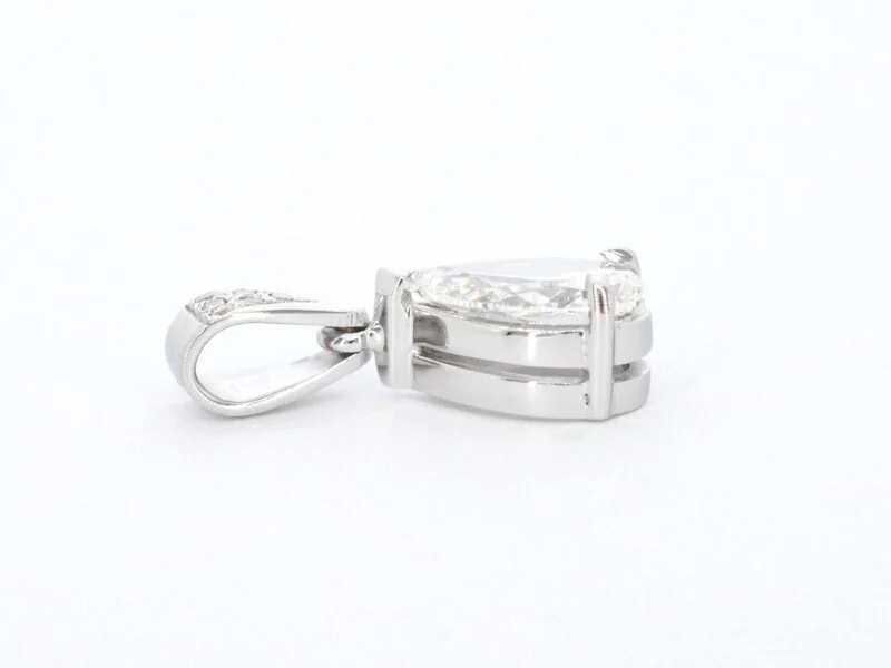 Product: Grote peer shape diamant in een witgouden hanger van 2.01 carat Specificaties: Diamant: Natuurlijk Aantal: 1 stuk Slijpvorm: pear shape Gewicht (carat): 2.01 carat Kleur: F Zuiverheid: SI1 Certificaat: IGI Certificaat nummer: 181593200 Diamant (secundair): Diamanten: In de Hanger Slijpvorm: Briljant geslepen Gewicht (carat): 0.10 carat Kleur: F-G Zuiverheid: VS Juweel: Hanger (excl. ketting) Gewicht: 2.7 gram Materiaal: 18K goud (750) Conditie: Nieuw Verpakking: Luxe sieradendoos Toelichting: De kwaliteit is overgenomen van het rapport behorend bij item. De waardebepaling is een beoordeling van een gecertificeerde diamantair, gebaseerd op consumentenprijzen. Consumentenprijs: € 63.000,-
