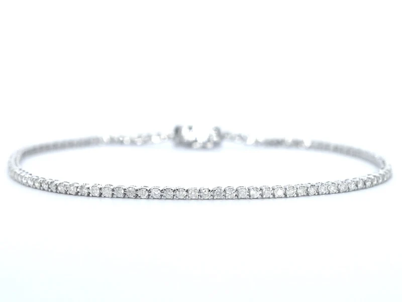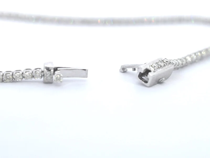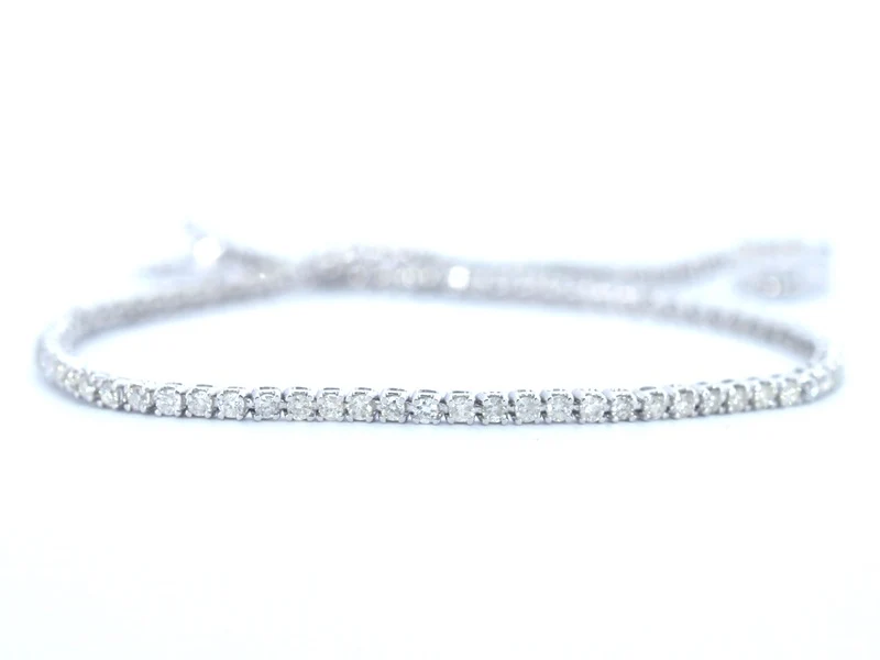 Product: Witgouden tennisarmband met diamanten 1.00 carat Specificaties: Diamant: Natuurlijk Slijpvorm: Briljant geslepen Gewicht (carat): 1.00 carat Kleur: F-G Zuiverheid: SI-P Slijpkwaliteit: Zeer mooi Juweel: Armband Gewicht: 3 gram Afmetingen/lengte: 17.5 cm Materiaal: 14 karaat (585) Conditie: Nieuw Verpakking: Luxe sieradendoos Toelichting: De kwaliteit is overgenomen van het rapport behorend bij item. De waardebepaling is een beoordeling van een gecertificeerde diamantair, gebaseerd op consumentenprijzen. Consumentenprijs: € 4.400,-