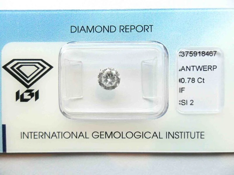 Product: Diamant - 0.78 carat echte natuurlijke "Star of Amsterdam" diamant (gecertificeerd) Specificaties: Diamant: Natuurlijk Aantal: 1 stuk Slijpvorm: Euro cut Gewicht (carat): 0.78 carat Kleur: F Zuiverheid: SI2 Certificaat: IGI Certificaat nummer: 375918467 Merk: 257 facetten 'Star of Amsterdam' Conditie: Nieuw Verpakking: Edelsteendoos Toelichting: De kwaliteit is overgenomen van het rapport behorend bij item. De waardebepaling is een beoordeling van een gecertificeerde diamantair, gebaseerd op consumentenprijzen. Consumentenprijs: € 7.920,-