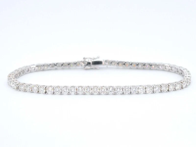 Product: Witgouden armband vol met briljant geslepen diamanten 6.00 carat Specificaties: Diamant: Natuurlijk Aantal: 59 stuks Slijpvorm: Briljant geslepen Gewicht (carat): 6.00 carat Kleur: H Zuiverheid: VS Slijpkwaliteit: Zeer mooi Juweel: Armband Gewicht: 10.5 gram Afmetingen/lengte: 18 cm Materiaal: 18K goud (750) Conditie: Nieuw Verpakking: Luxe sieradendoos Toelichting: De kwaliteit is overgenomen van het rapport behorend bij item. De waardebepaling is een beoordeling van een gecertificeerde diamantair, gebaseerd op consumentenprijzen. Consumentenprijs: € 28.000,-
