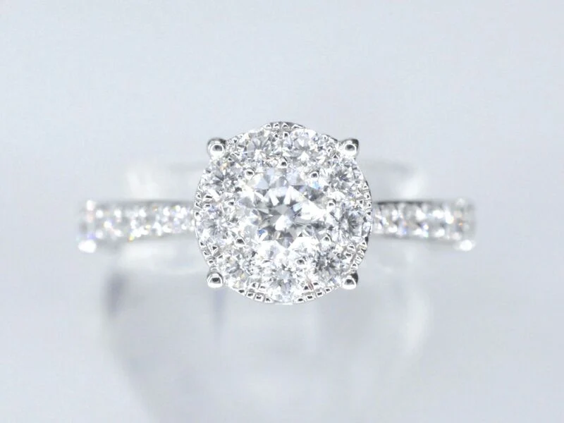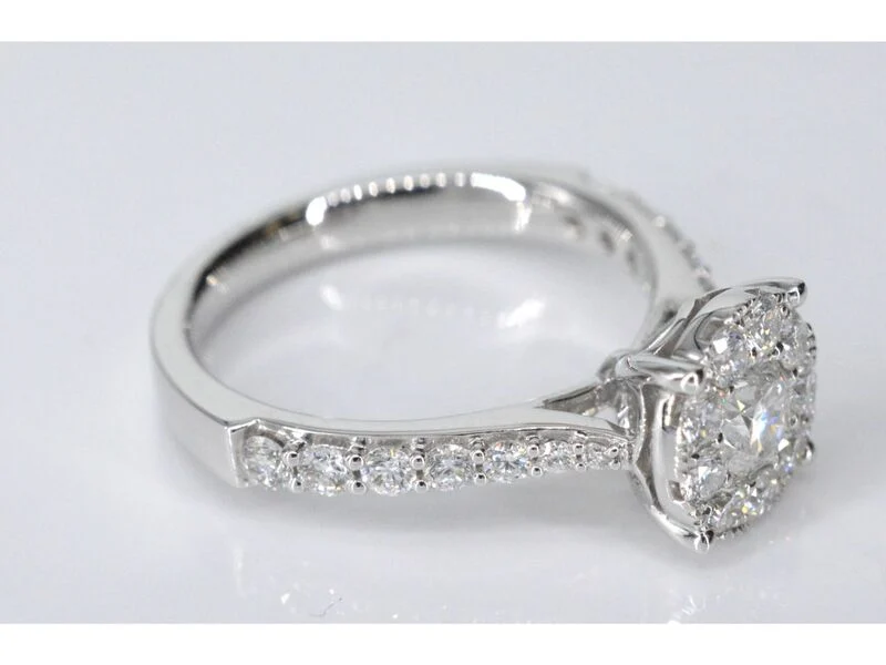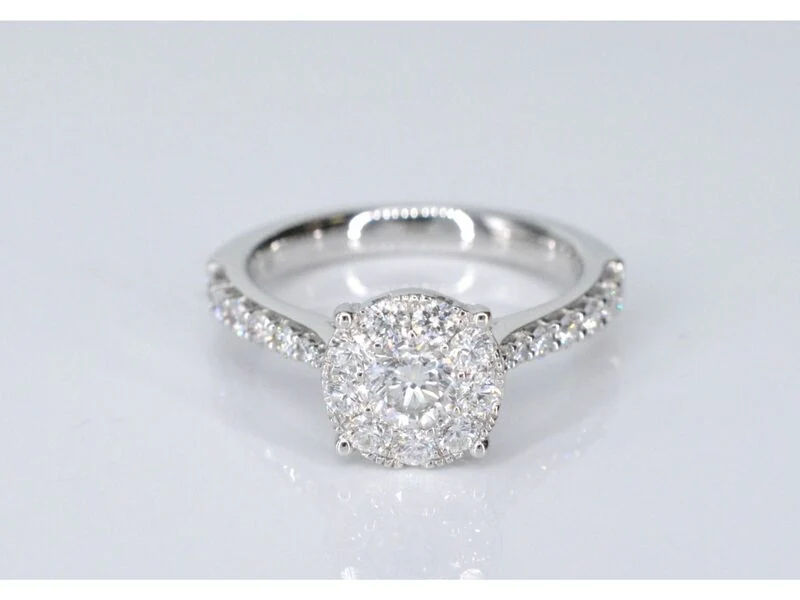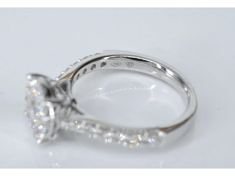 Product: Witgouden entourage ring met grote briljant geslepen diamanten Specificaties: Diamant: Natuurlijk Slijpvorm: Briljant geslepen Gewicht (carat): 1.30 carat Kleur: F-G Zuiverheid: VS Slijpkwaliteit: Zeer mooi Juweel: Ring Gewicht: 4.2 gram Ringmaat (op maat gemaakt*): 53 (17 mm) Materiaal: 18K goud (750) Conditie: Nieuw Verpakking: Luxe sieradendoos Toelichting: De kwaliteit is overgenomen van het rapport behorend bij item. De waardebepaling is een beoordeling van een gecertificeerde diamantair, gebaseerd op consumentenprijzen. Consumentenprijs: € 10.413,-
