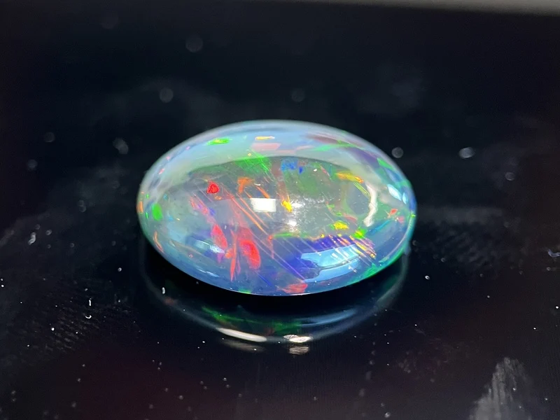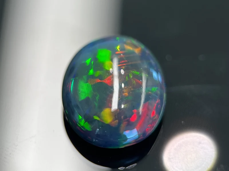 Product: Black opal - 7.23 carat Natuurlijke Black opal Specificaties: Edelsteen: Black opal Aantal: 1 stuk Slijpvorm: Ovaal vorm cabochon Gewicht (carat): 7.23 carat Kleur: Zeer hoog in kleuren diversiteit Conditie: Nieuw Verpakking: Edelsteendoos Toelichting: De kwaliteit is overgenomen van het rapport behorend bij item. De waardebepaling is een beoordeling van een gecertificeerde diamantair, gebaseerd op consumentenprijzen. Consumentenprijs: € 3.300,-