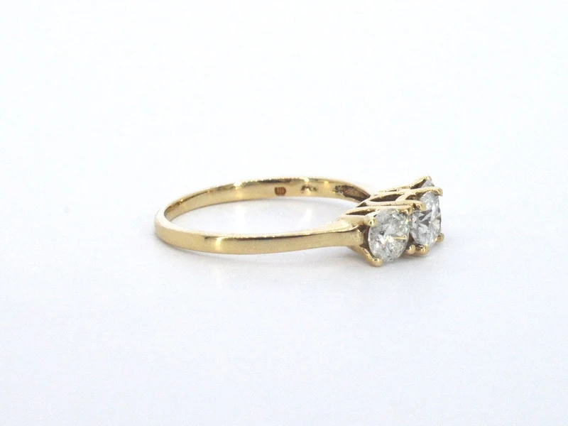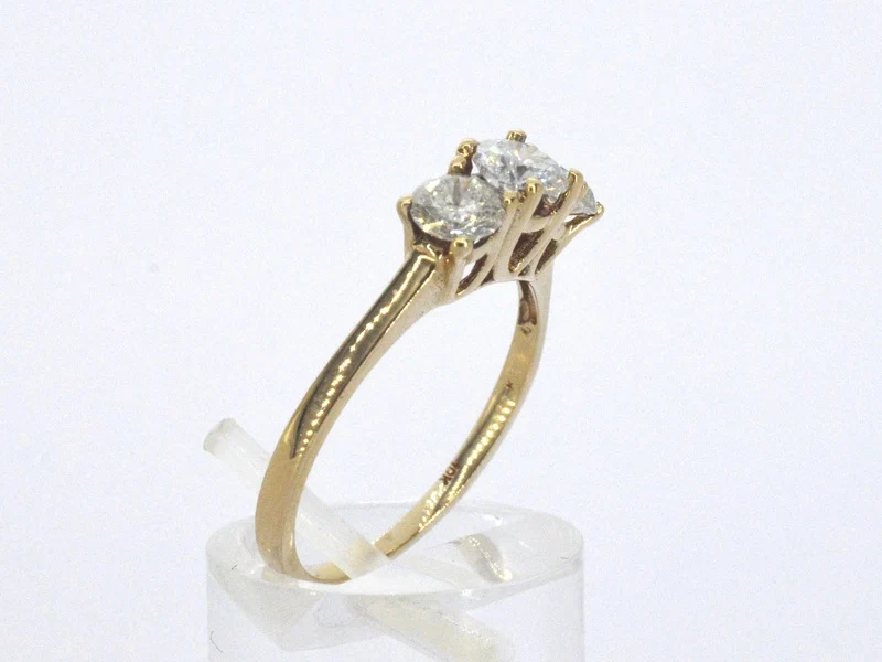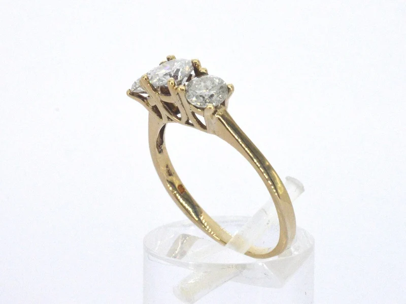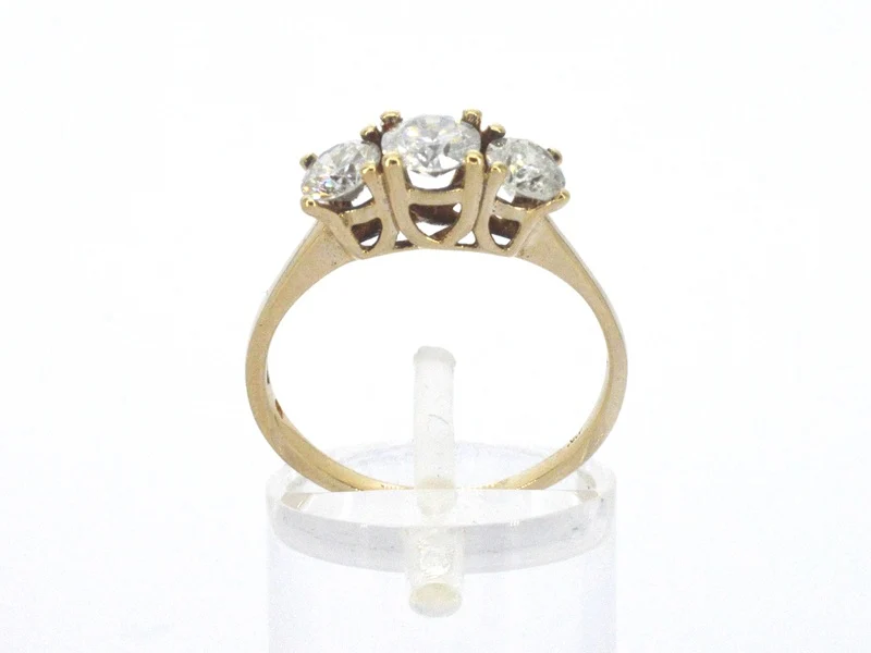 Product: 10K goud met 3-steens briljanten ring Specificaties: Diamant: Natuurlijk Aantal: 3 stuks Slijpvorm: Briljant geslepen Gewicht (carat): 1.00 carat Kleur: H-I Zuiverheid: P Juweel: Ring Gewicht: 1.8 gram Ringmaat (op maat gemaakt*): 55 (17.5 mm) Materiaal: 10K goud Conditie: Zo goed als nieuw Verpakking: Luxe sieradendoos Toelichting: De kwaliteit is overgenomen van het rapport behorend bij item. De waardebepaling is een beoordeling van een gecertificeerde diamantair, gebaseerd op consumentenprijzen. Consumentenprijs: € 6.160,-