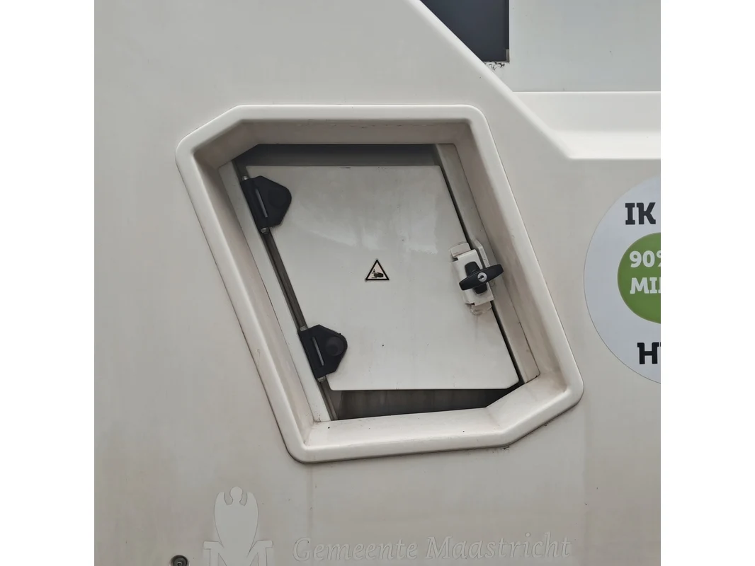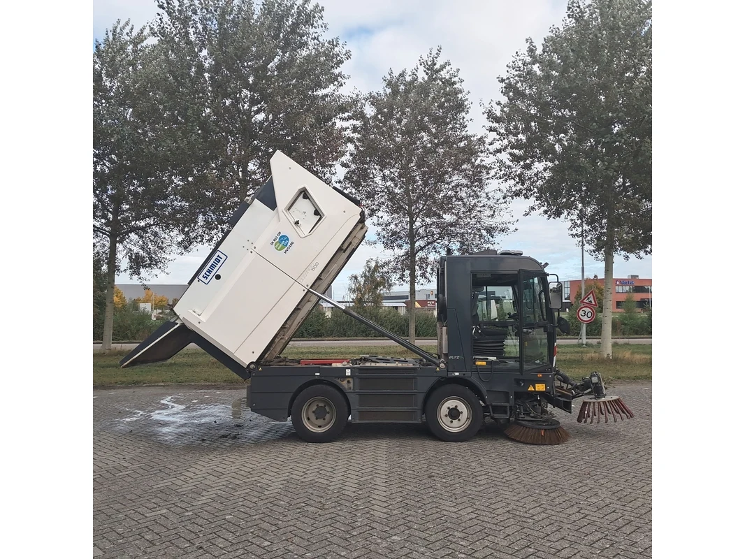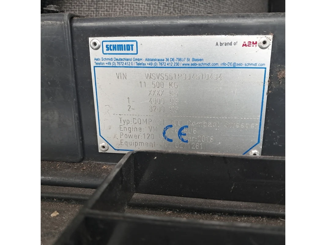 Merk: SCHMIDT Product: Veegmachine BouwJaar: 2018 Conditie: Gebruikt Specificaties: Basiskenmerken Kenteken: TXV-34-T Chassisnummer (VIN): WSVS561P3J4610434 Datum eerste toelating: 30 juni 2018 Afgelezen tellerstand: 41.049 km Motor & Milieu Motortype: FCA R756 Aantal cilinders: 6 Uitlaatmissie: Euro 6 c Brandstof: Diesel Cilinderinhoud: 4.455 cm³ Vermogen: 120 kW Technische gegevens Vuilcontainer inhoud: 5 m³ Diameter schotelborstel: 900 mm Snelheid schotelborstel: 140 1/min Veegbreedte: 2.200 mm Veegbreedte (met 3e borstel): 3.550 mm Schoonwater volume: 685 l Schoonwaterpomp: 3.4 bar / 15 l/min Maten & Gewichten Lengte: 5.487 mm Breedte (zonder borstel): 1.810 mm Hoogte (met zwaailicht): 2.707 mm Wielbasis: 1.850 mm Leeggewicht (basiseenheid): ca. 5.500 kg Toegestaan totaalgewicht: 12.100 kg (40 km/h) / 11.500 kg (50 km/h)