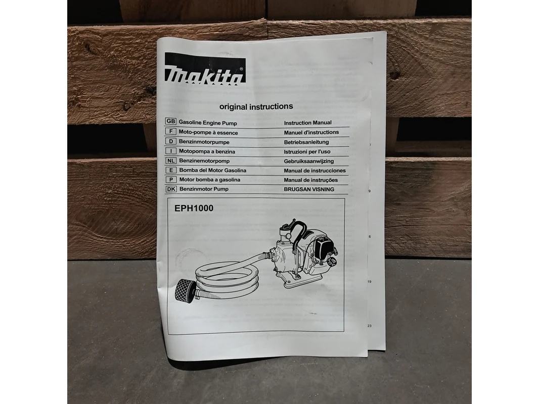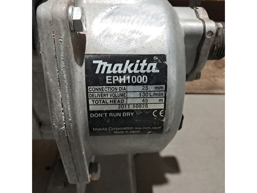 Merk: Makita Product: 4-takt waterpomp BouwJaar: 2011 Specificaties: Technische gegevens Cilinderinhoud: 33,5 cc Gewicht: 7,5 kg Aansluiting/opname: 1" Type motor: 4-takt Opvoerpomp: ja Max. capaciteit: 130 m/min Inhoud brandstoftank: 0,65 l Max. capaciteit Cu: 130 mm² Totale opvoerhoogte: 45 m Max. zuighoogte: 8 m Zelfaanzuigend: ja Max. capaciteit: 130 l/min Zuighoogte maximaal: 8 m
