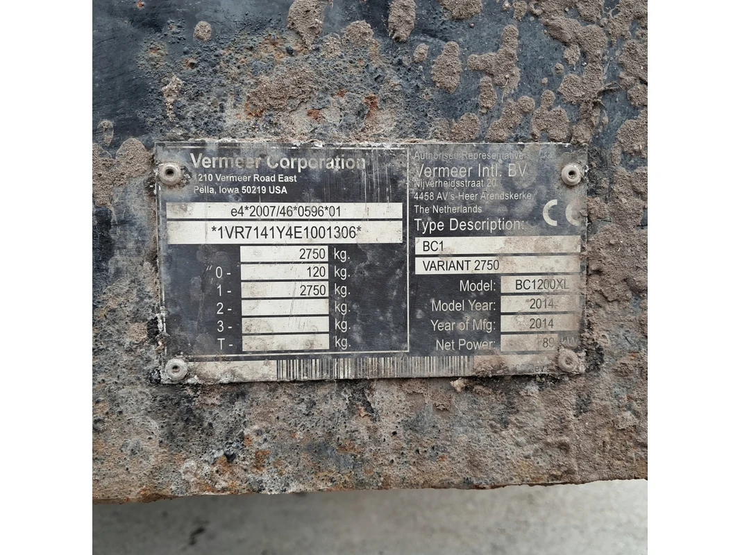 Merk: Vermeer Product: Houtversnipperaar BouwJaar: 2014 Conditie: Gebruikt Specificaties: Basiskenmerken Kenteken: 72-WL-PD Chassisnummer: 1VR7141Y4E1001306 Goedkeuringsnummer: e4*2007/46*0596*01 Datum eerste toelating: 23 december 2014 Afgelezen tellerstand: 3.628 u. Motor & milieu Motor: Origin 4.3 Aantal cilinders: 6 Max. vermogen: 85,8 kW Max. koppel: 323,2 Nm Brandstof: Benzine Maten & gewichten Voertuig lengte: 4.267 mm (voertafel omhoog, tong naar binnen) Voertuig lengte: 5.232 mm (voertafel omlaag, tong uitgestoken) Voertuig breedte: 2.007 mm Voertuig hoogte: 2.616 mm Gewicht: 2.576 kg