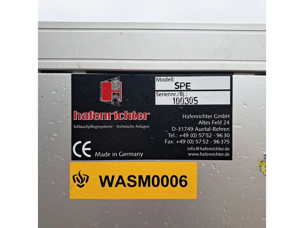 Merk: Hafenrichter Product: Brandslangen onderhoudssysteem Afmeting: Volledige afmeting (HxBxD): 1.855 x 2.800 x 690 mm BouwJaar: 2005 Conditie: Gebruikt Specificaties: Basiskenmerken Serienummer: 100305 Afmetingen Hoogte: 1.855 mm Breedte: 2.800 mm Diepte: 690 mm Inclusief • Stof- en waterzuiger KÄRCHER NT 65/2 Eco