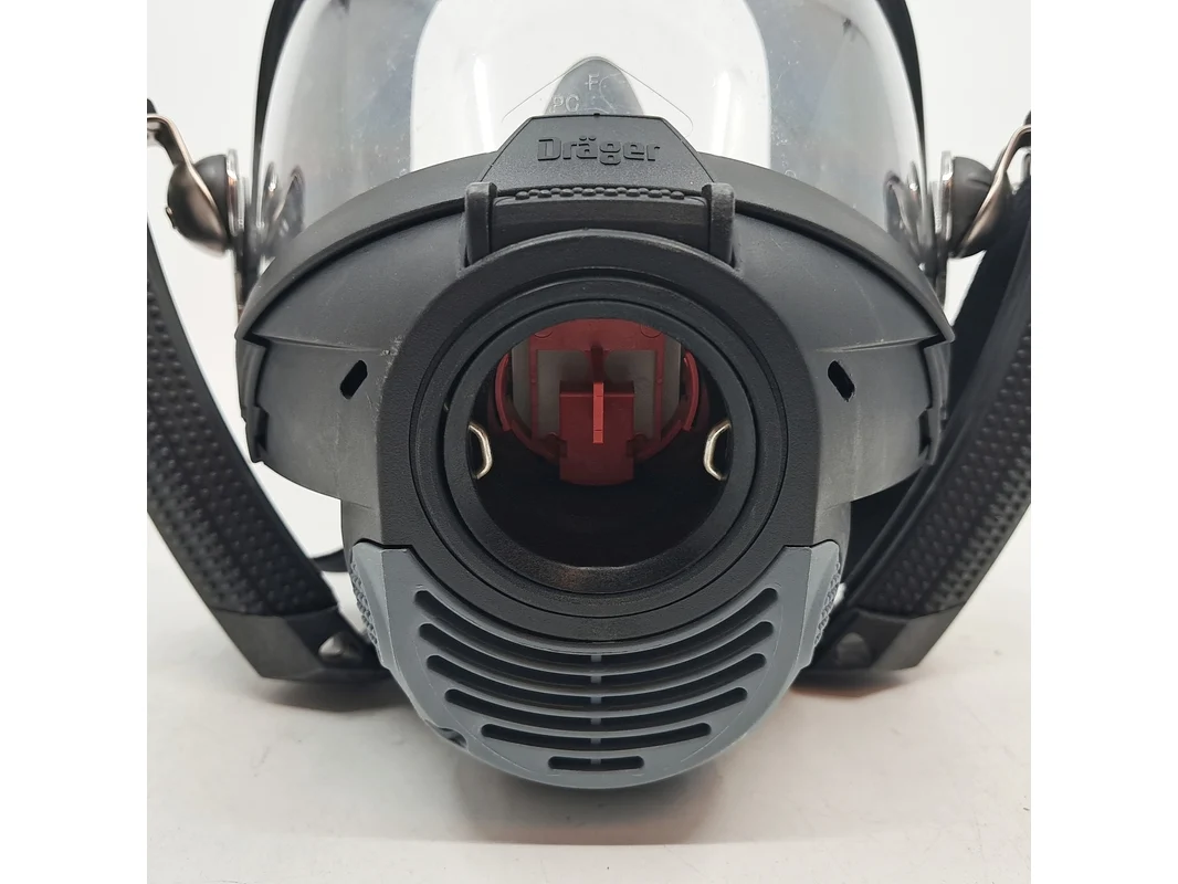 Merk: Dräger Product: Volgelaatsmasker Specificaties: Basiskenmerken Bouwjaar: 2016 - 2024 Conformiteit: EN 136 Klasse 3, EN 137 Type 2 Technische gegevens Aansluiting: Ronde schroefdaad conform EN 148/1 Materiaal: EPDM-kunststof (maskerlichaam), condensvrije polycarbonaat (lens) Gewicht: ca. 600 g (zonder filter) Voorzien van: • 5-puntsriemen • 180° hoek kijkvenster • Dubbel afdichtingsframe