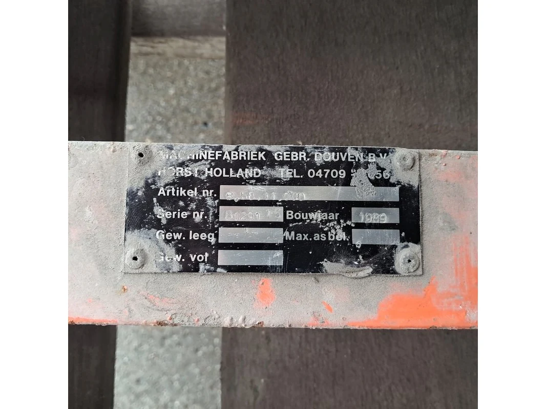 Merk: DOUVEN Product: Veldspuit BouwJaar: 1989 Conditie: Gebruikt Specificaties: Basiskenmerken Serienummer: 80291 15 Artikelnummer: 8.58.11.000