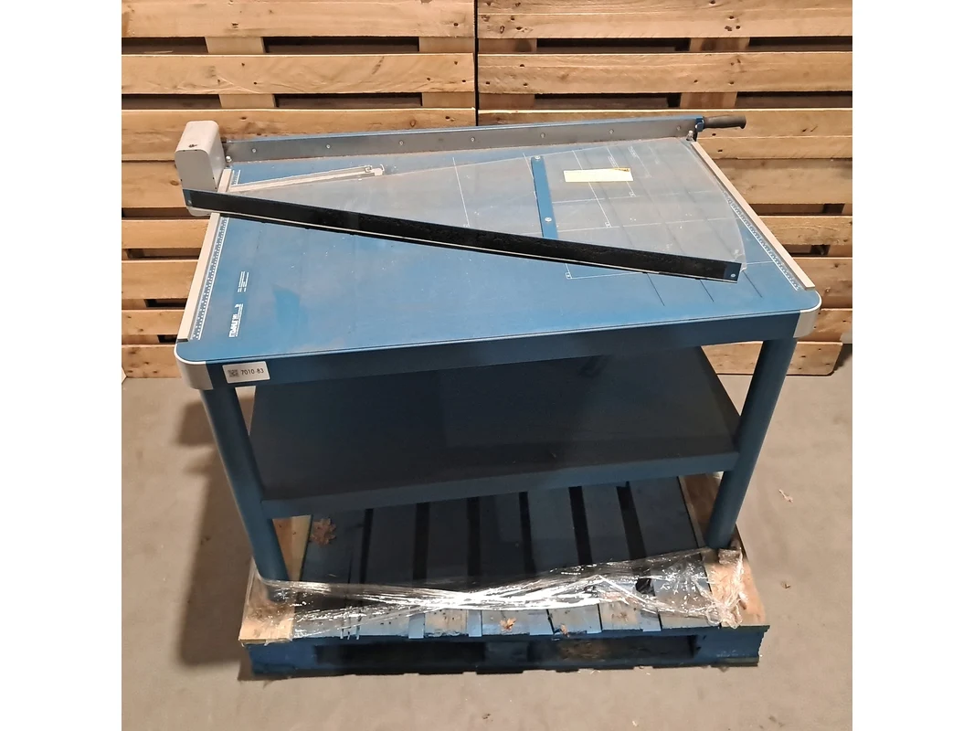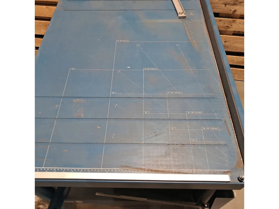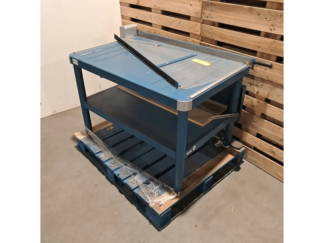 Merk: DAHLE Product: Atelier snijmachine Conditie: Gebruikt Specificaties: Technische gegevens Formaat: A1 Snijlengte: Tot 1.100 mm Snijhoogte: Tot 5 mm Snijcapaciteit: Tot 40 vellen Papier aandrukken: Voetbediening Snijdt: Papier, etiketten, foto's, kunststof, leer, dun metaal en karton Maten & Gewichten Afmetingen tafel: 1.165 x 760 mm Gewicht: 84 kg