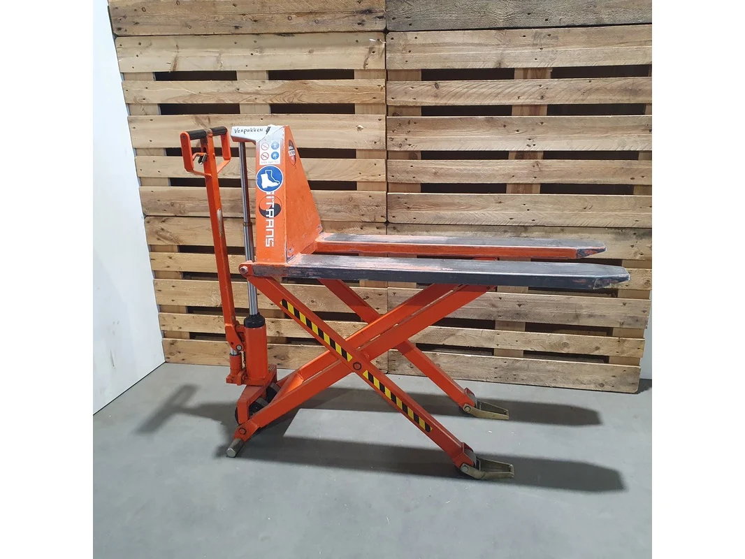 Merk: LOGITRANS Product: Hoogheffende palletwagen, LOGITRANS, HL 1000/3, 1995 BouwJaar: 1995 Conditie: Gebruikt Specificaties: Capaciteit: 1.000 kg Serienummer: 638240