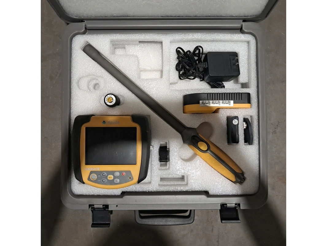 Merk: AQUA Product: (NS materiaal) Portable inspectiecamera Conditie: Gebruikt Specificaties: Basis kenmerken Serienummer: S309080001 Technische gegevens Scherm: 127 mm (5") colour TFT-LCD (640 x 480 pixels) Poorten: USB 2, SD-kaart, video I/O, AC-voeding Camera: 29 mm (diameter) x 48 mm (lengte) , ¼ inch CCD-beeldsensor Gevoeligheid: 2 lux @ F3.5 Voeding: Oplaadbare batterij, NiMH (input power 6V DC, 150 mA) Gewicht: 1,4 kg (3 lbs) Bedrijfstemperatuur: -10°C tot 60°C (14°F tot 140°F) Inclusief • 1x batterij • AC adapter (universeel) • LED camera • 450 mm draaibaar handvat • Batterijlader • Hardcase koffer