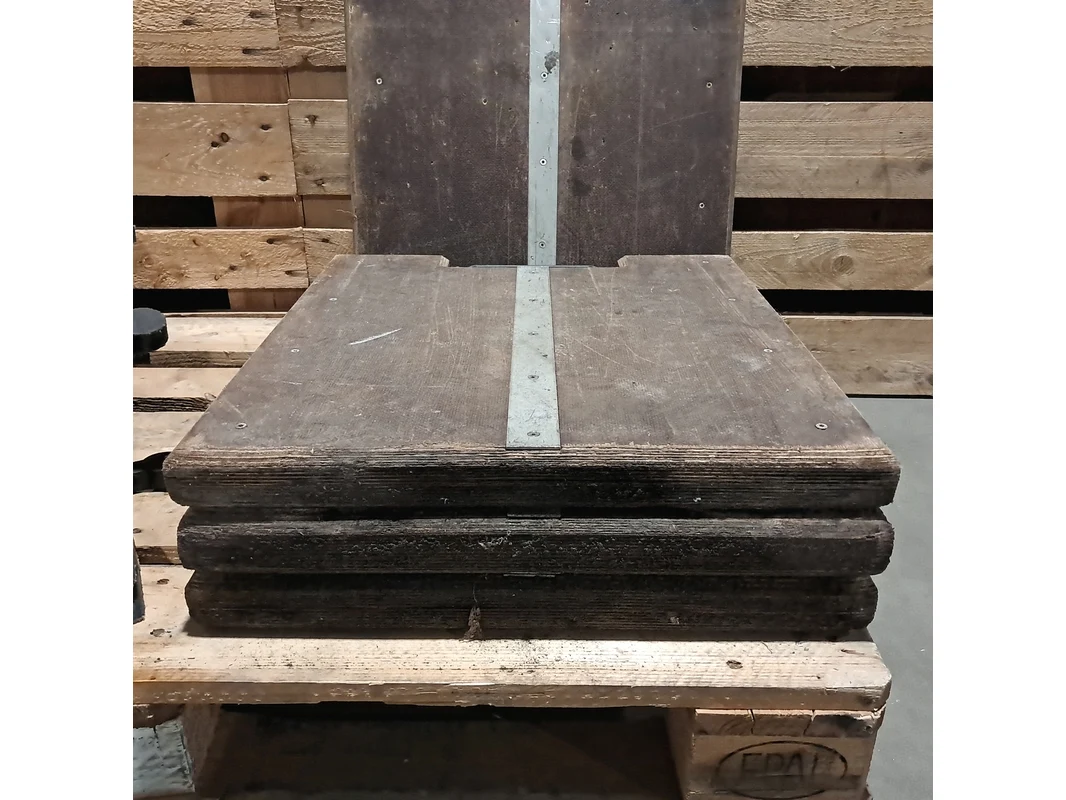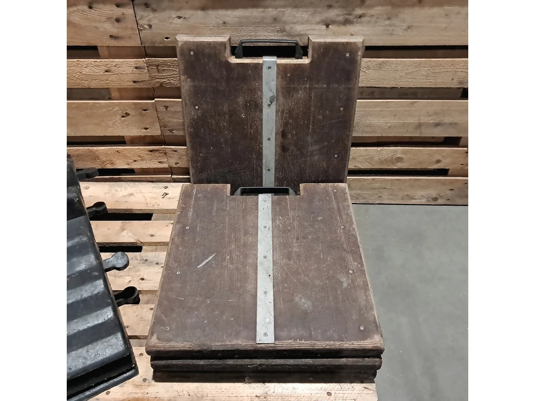Product: 4x Houten stempelplaat en 3x kabelbrug Conditie: Gebruikt Specificaties: Afmetingen Stempelplaten (LxBxD): 555 x 530 x 55 mm Kabelbruggen (LxB): 860 x 300 mm
