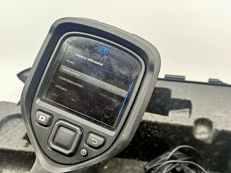 Merk: FLIR Product: Warmtebeeldcamera Conditie: Gebruikt Specificaties: Basiskenmerken Serienummer: 6393007 Technische gegevens IR resolutie: 160 x 120 pixels Thermische gevoeligheid/NETD: 0.06°C (0.11°F) / 60 mK Field of view (FOV): 45° × 34° Minimale focus afstand: 0.5 m (1.6 ft.) Spatial resolutie (IFOV): 5.2 mrad Beeld frequentie: 9 Hz Display: 3.0" 320x 240 color LCD Temperatuurbereik object: 20°C to +250°C (–4°F to +482°F) Inclusief • 1x accu • Laadkabel • Heavy duty case (deksel ontbreekt)