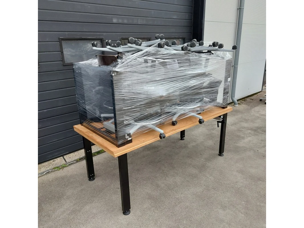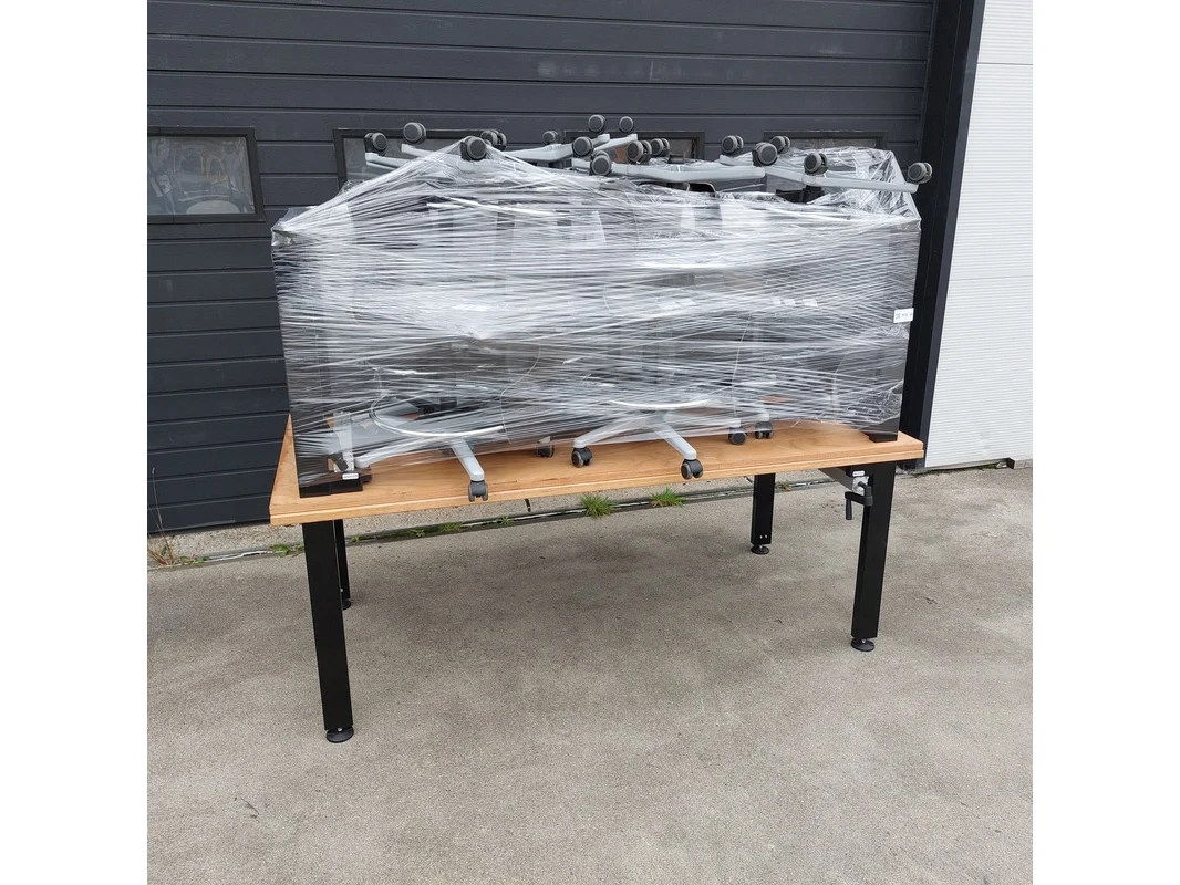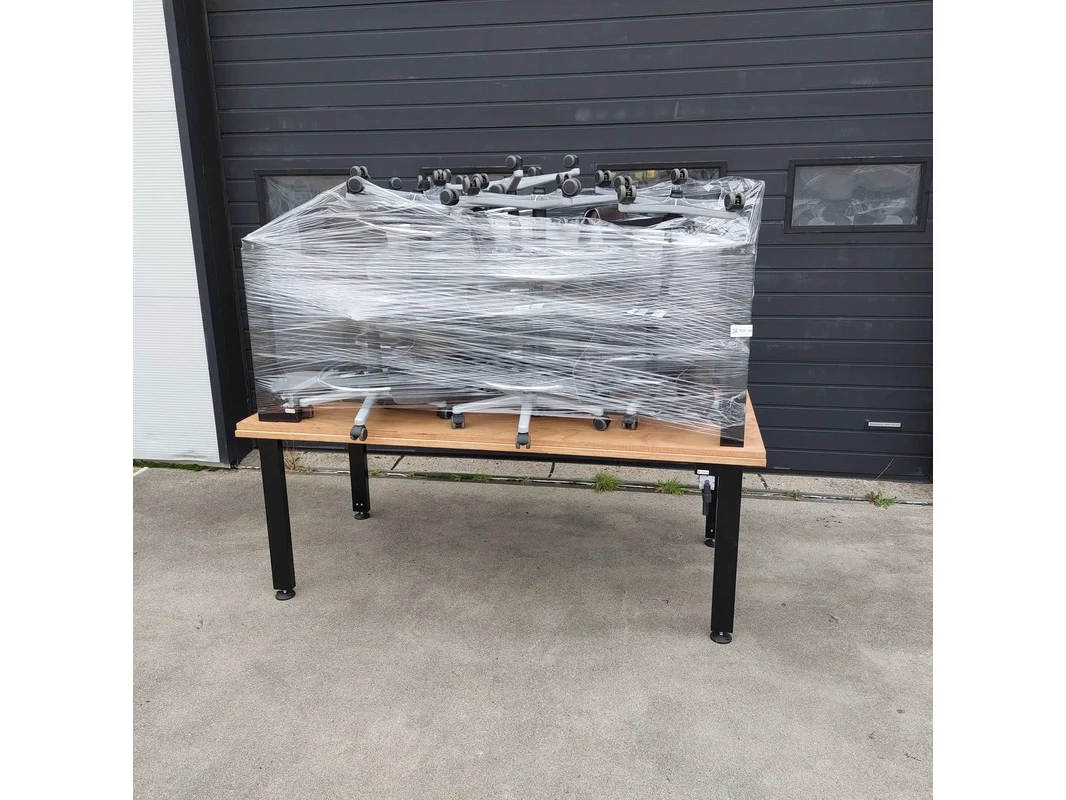 Product: Werktafel met 10x bureaustoel Afmeting: Tafel (LxB): ca. 2.000 x 900 mm Conditie: Gebruikt Specificaties: Bestaande uit: • 2x werktafel, (LxB): ca. 2.000 x 900, (in hoogte verstelbaar) • 10x bureaustoel, A2S SZ 8385.002