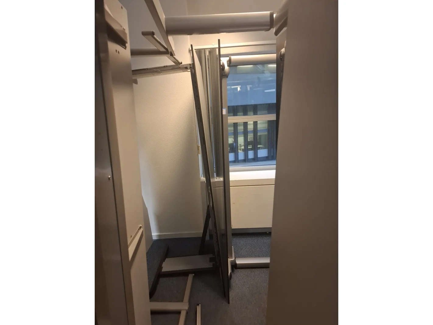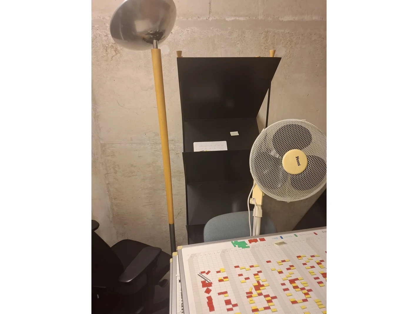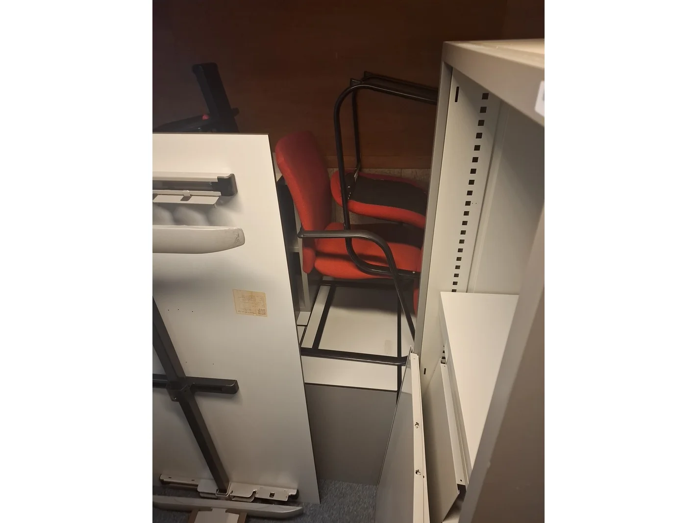Product: Partij bedrijfsmiddelen Conditie: gebruikt Specificaties: Partij bedrijfsmiddelen, bestaande uit onder andere: • Bureaus • Stoelen • Kapstokken • Ladeblokken • Spatschermen • Palen • Whiteboards • Ventilator • Lectuurkast • Geluidsapparaat • Kerstartikelen • Lamp Let op: hoge roldeurkasten maken géén onderdeel uit van deze verkoop, tenzij deze expliciet worden getoond tijdens de kijkdag.