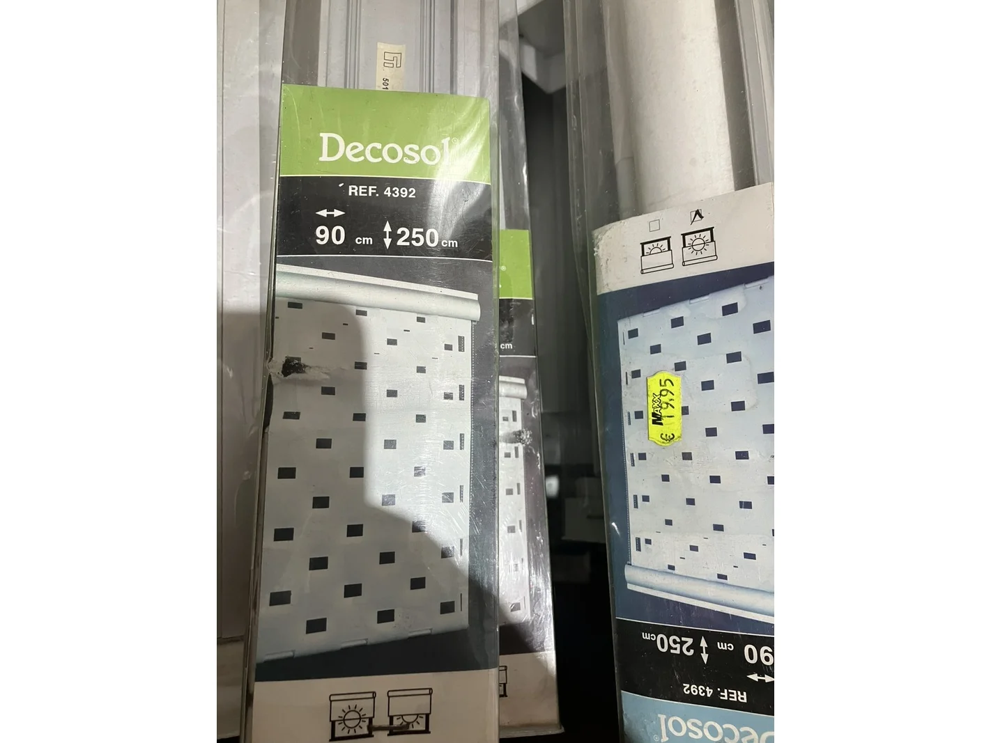 Merk: Decosol Product: Rolgordijnen Kleur: diverse kleuren Afmeting: diverse maten Conditie: nieuw