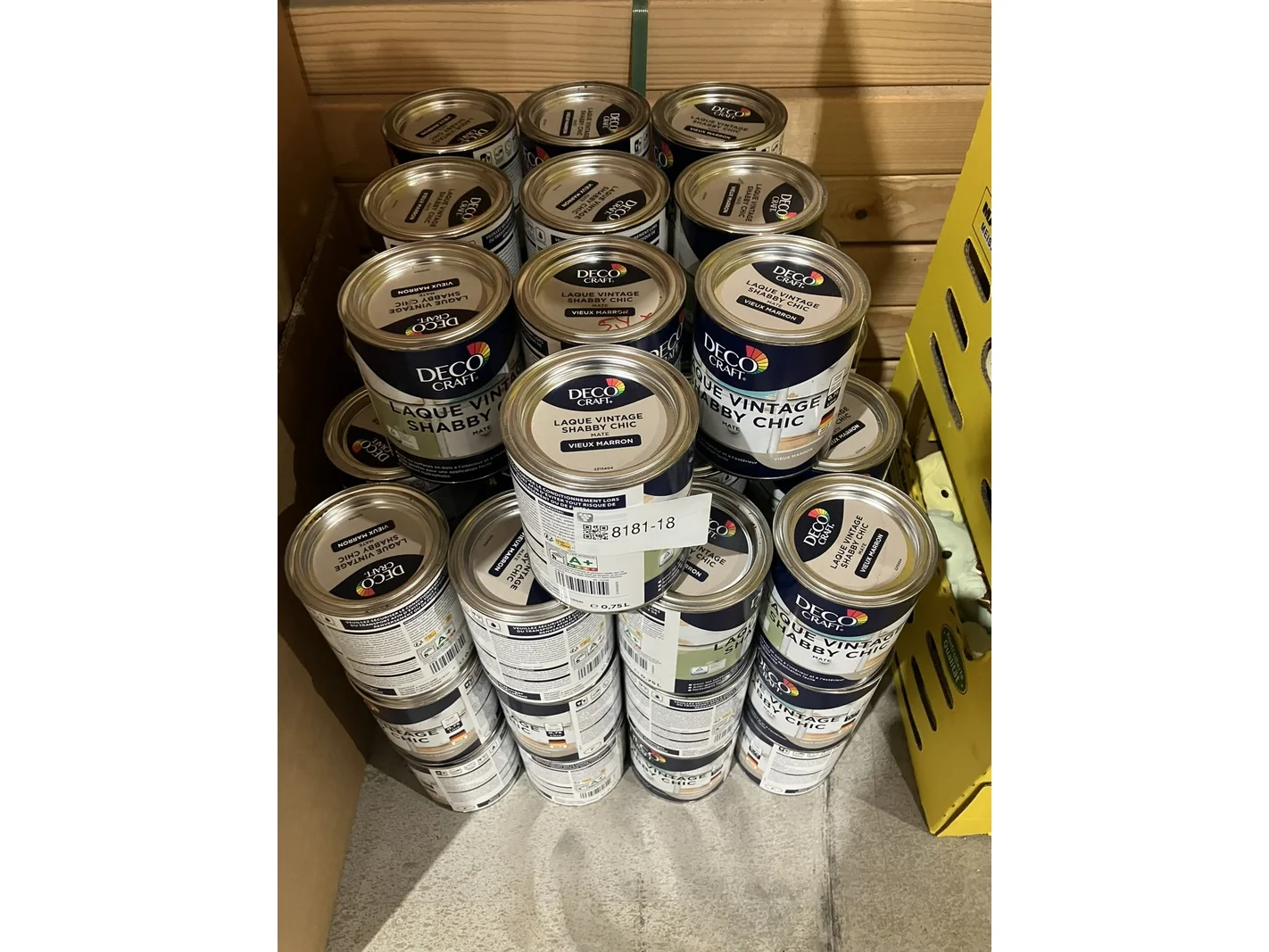 Merk: DecoCraft Product: Blikken shabby chic vintage lak Kleur: vieux marron Afmeting: 0,75 liter Conditie: nieuw Specificaties: Voor binnen en buiten, waterverdunbaar, rendement ca 11m2