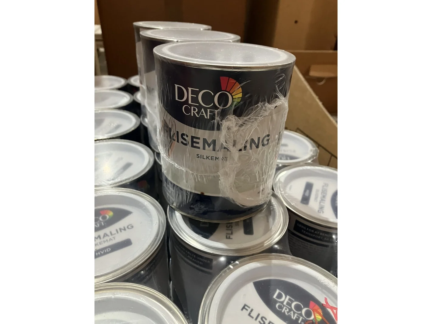 Merk: Decocraft Product: Blikken tegelverf Afmeting: 0,75 liter Conditie: nieuw Specificaties: Voor binnen, waterverdunbaar, rendement ca 8m2