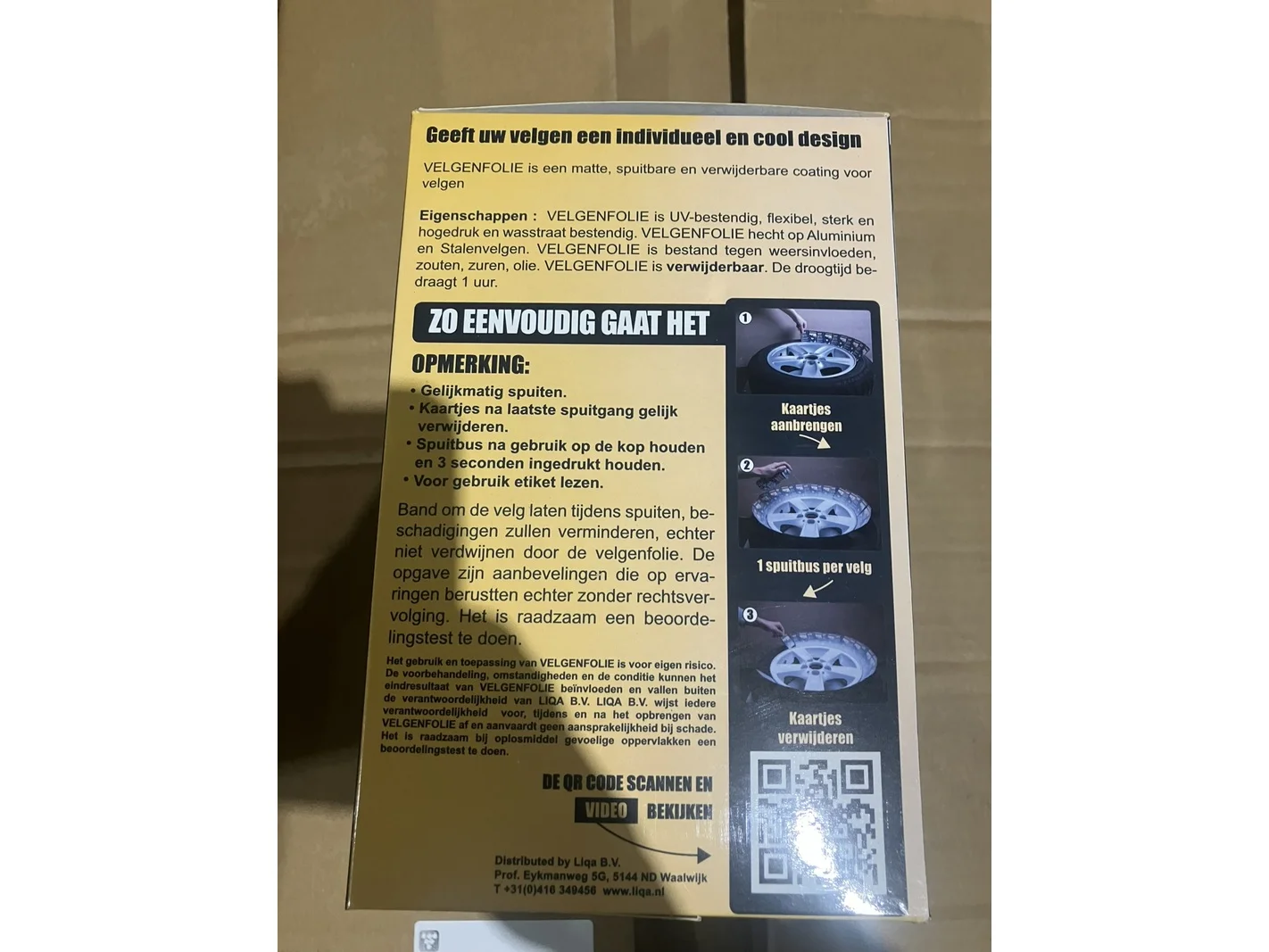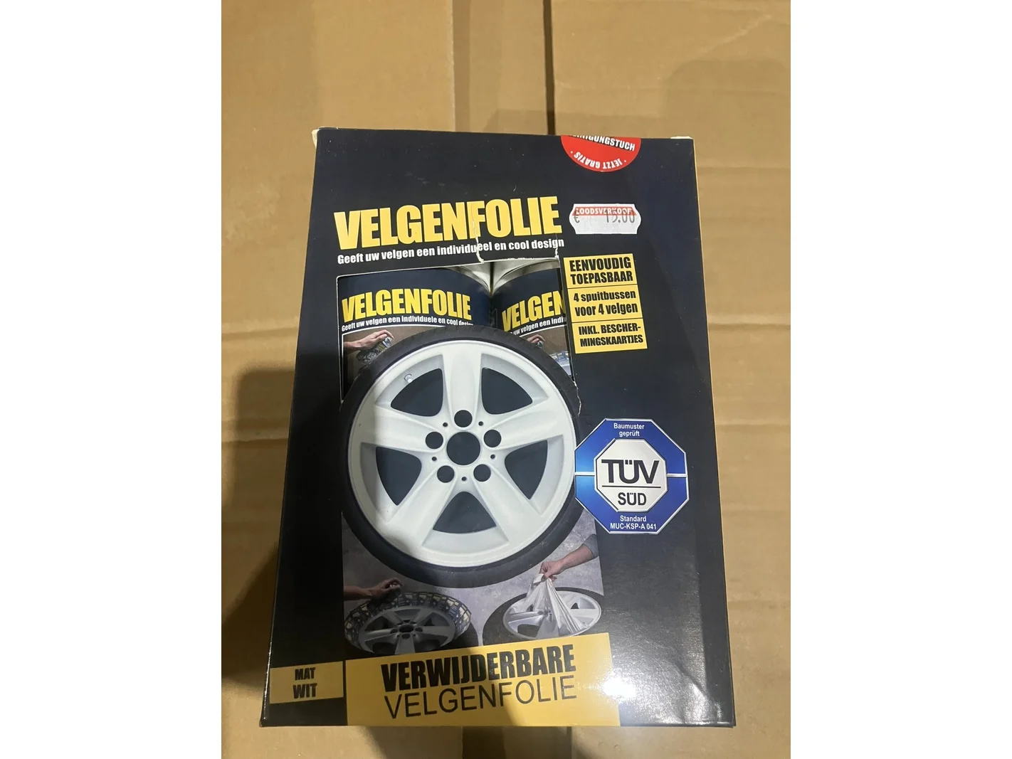 Product: Velgenfolie Kleur: wit Conditie: nieuw Specificaties: verpakt per 4 stuks, verwijderbare velgenfolie