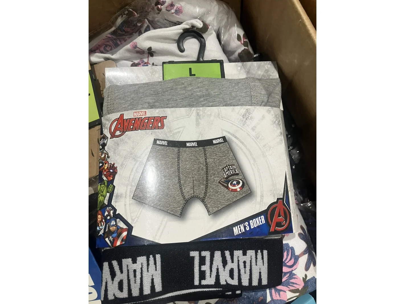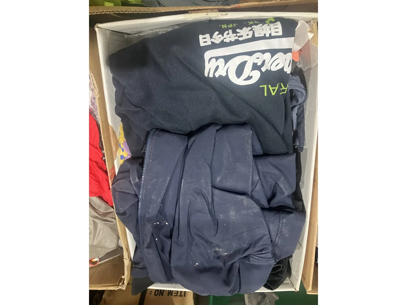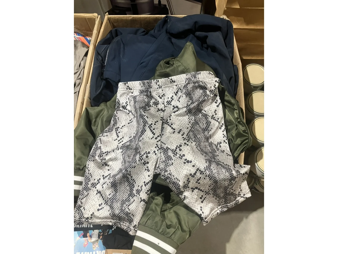 Product: Dozen mixkleding Conditie: nieuw Specificaties: o.a. Boxershorts, broeken, vesten en jasjes