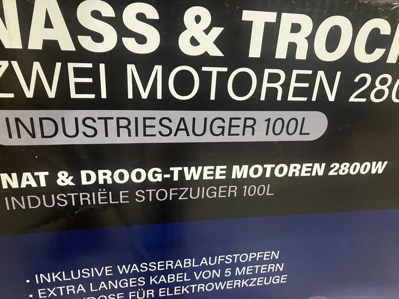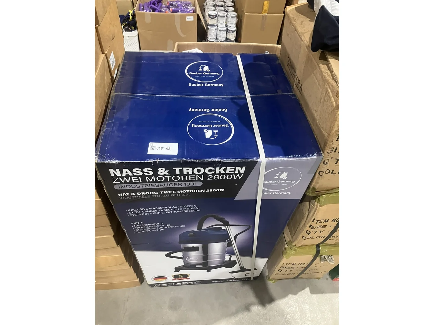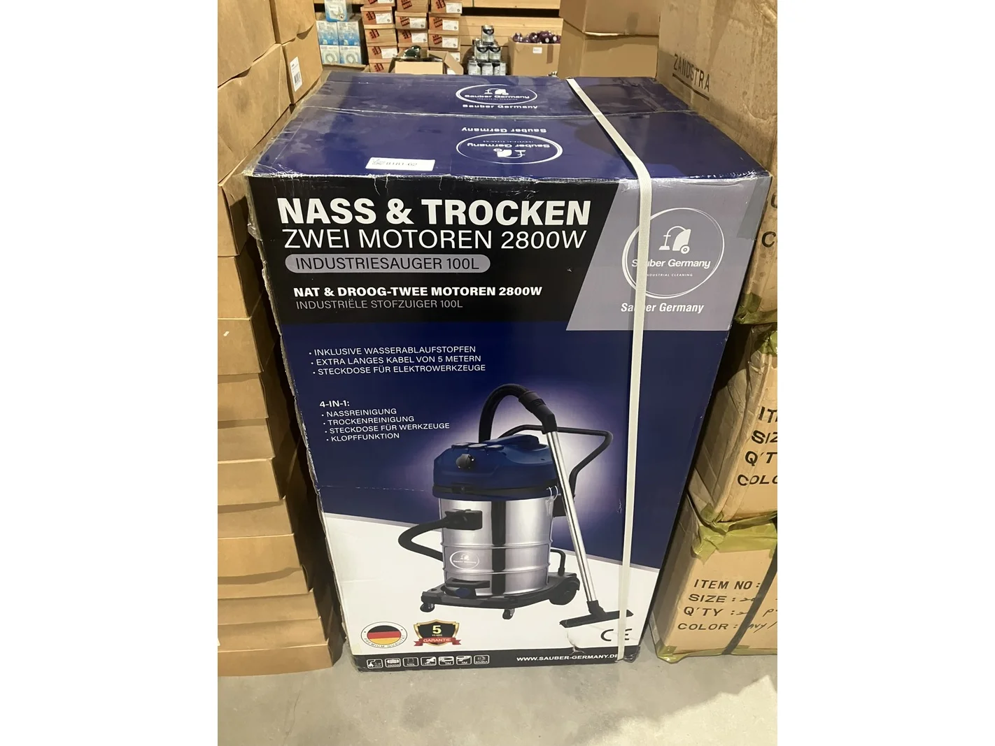 Merk: Sauber Product: Industriële nat en droogzuiger Kleur: marine/wit Afmeting: 100 liter Conditie: nieuw