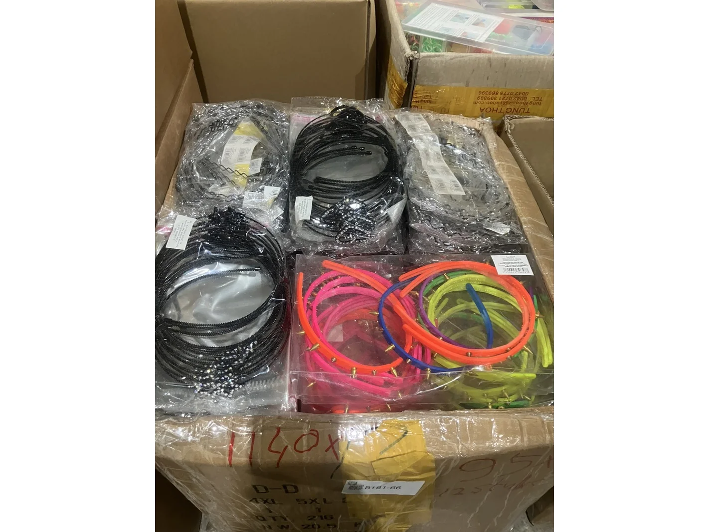 Product: Haardiademen Kleur: verschillende kleuren Conditie: nieuw Specificaties: 95 verpakkingen met 12 stuks