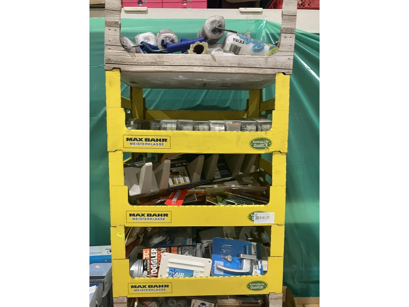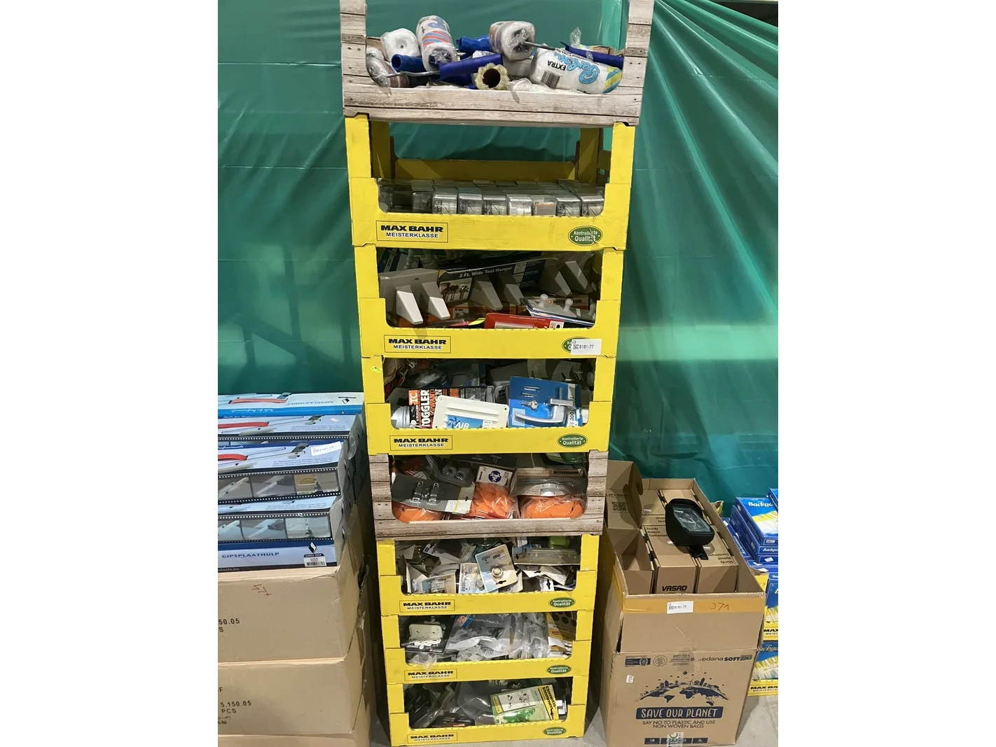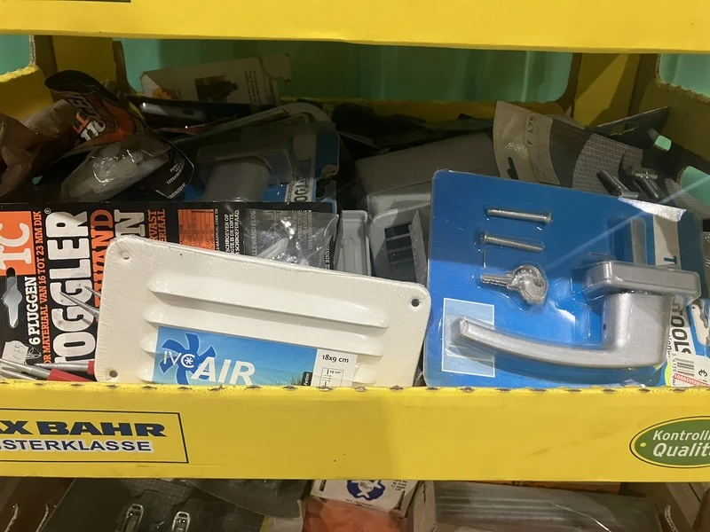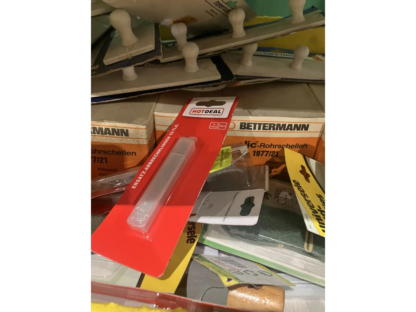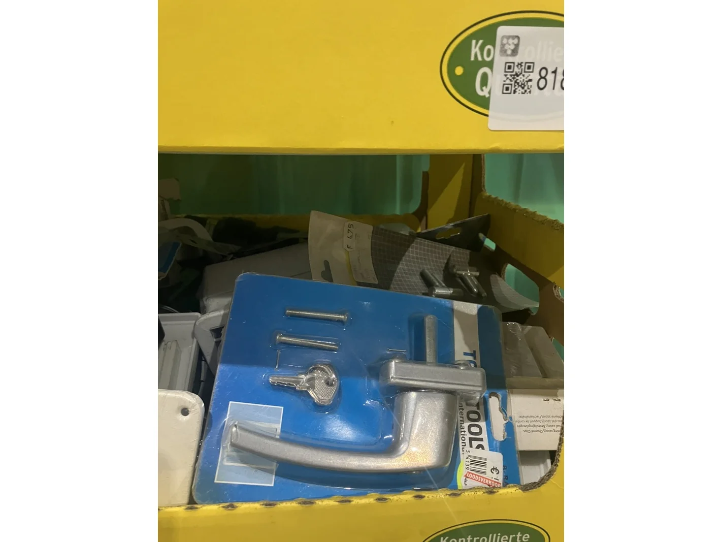 Product: Dozen klusgerei Conditie: nieuw Specificaties: o.a. Universele bindbandjes, gipswand pluggen, verfrollers en hang/sluitwerk
