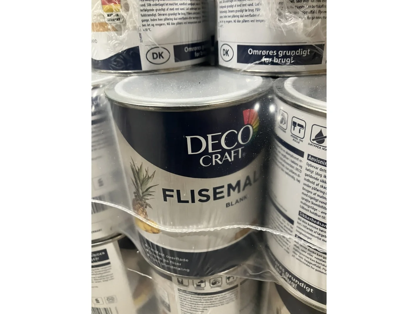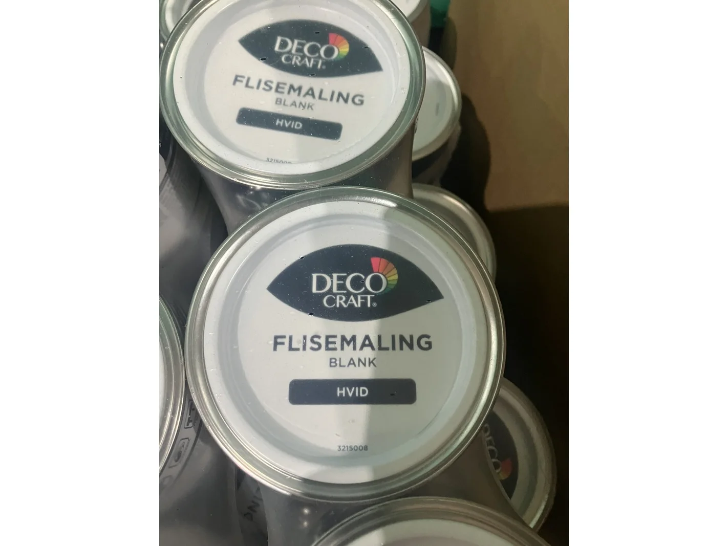 Merk: DecoCraft Product: Blikken tegelverf Kleur: wit Afmeting: 0,75 liter Conditie: nieuw Specificaties: Voor binnen en buiten, waterverdunbaar, rendement ca 11m2