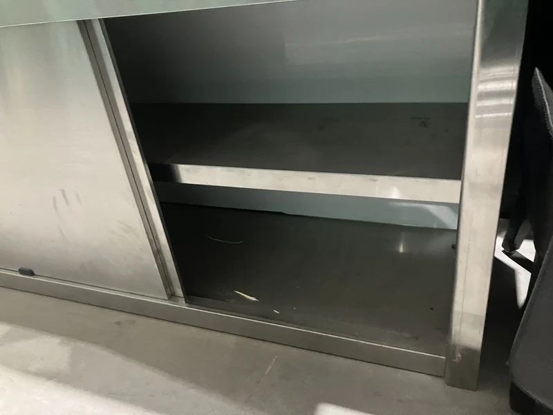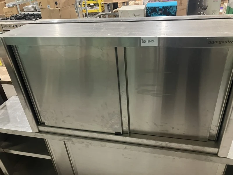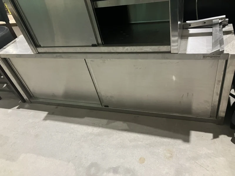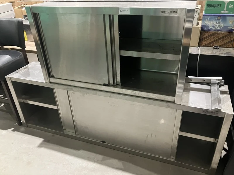 Merk: GGM Gastro Product: RVS horeca hangschuifkasten Materiaal: RVS Conditie: gebruikt Specificaties: bovenste kast 65x120x40 cm, onderste kast 65x200x40 cm