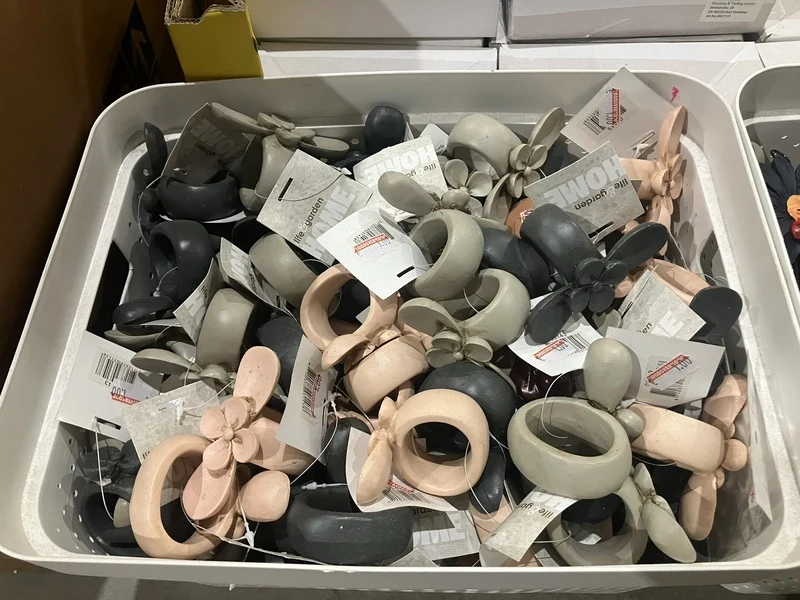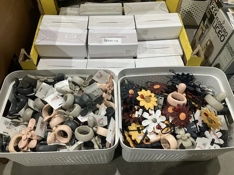 Product: Doos en 2 manden Conditie: nieuw Specificaties: Servetringen en ophanghaakjes