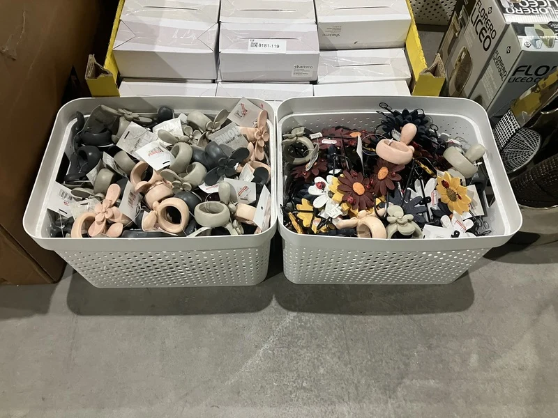 Product: Doos en 2 manden Servetringen en ophanghaakjes Conditie: nieuw Specificaties: Servetringen en ophanghaakjes