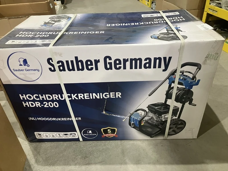 Merk: Sauber Product: Hogedrukreiniger op benzine Kleur: Blauw/Zwart Conditie: nieuw