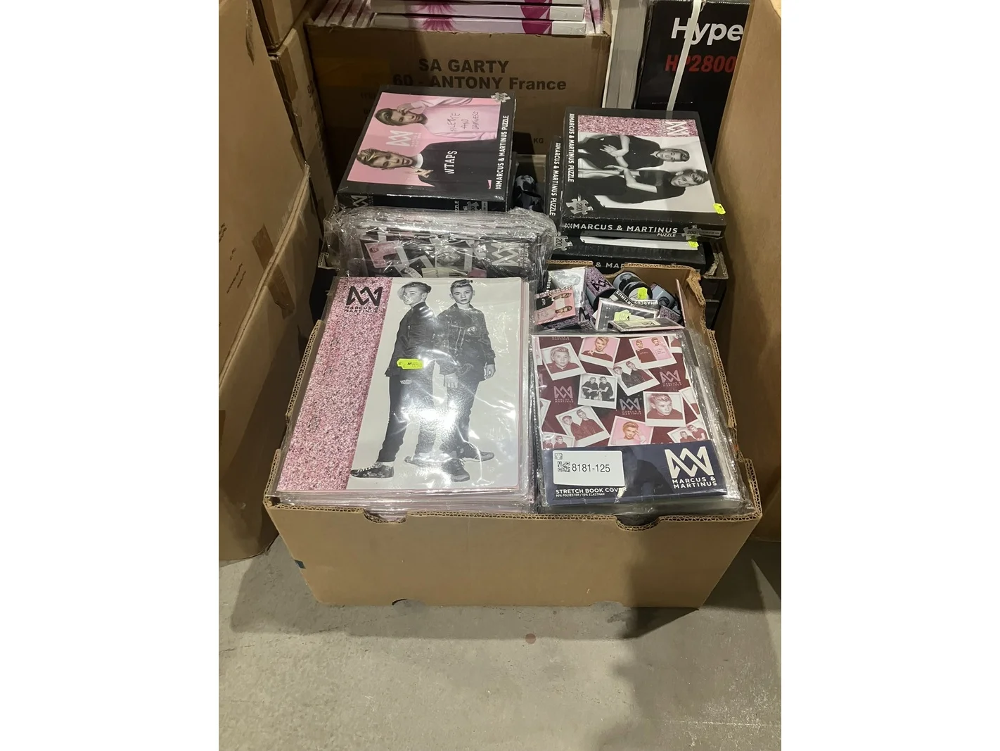 Product: Partij Marcus en Martinus artikelen Conditie: nieuw Specificaties: o.a. boekkaften, puzzels, mappen en magneten