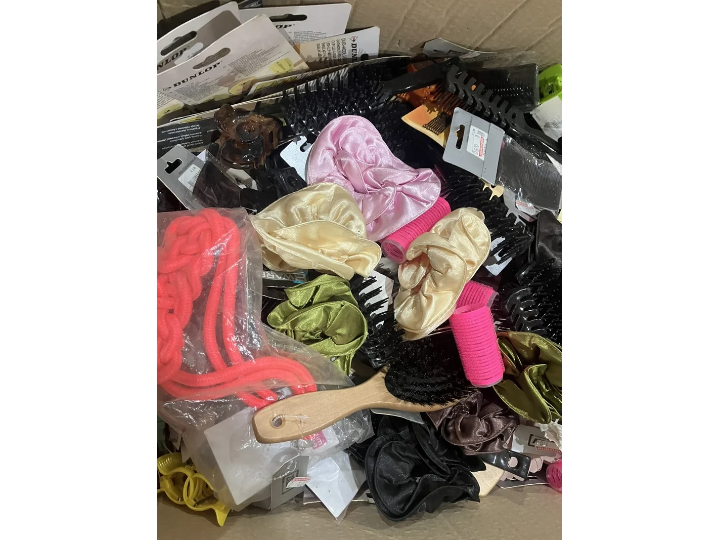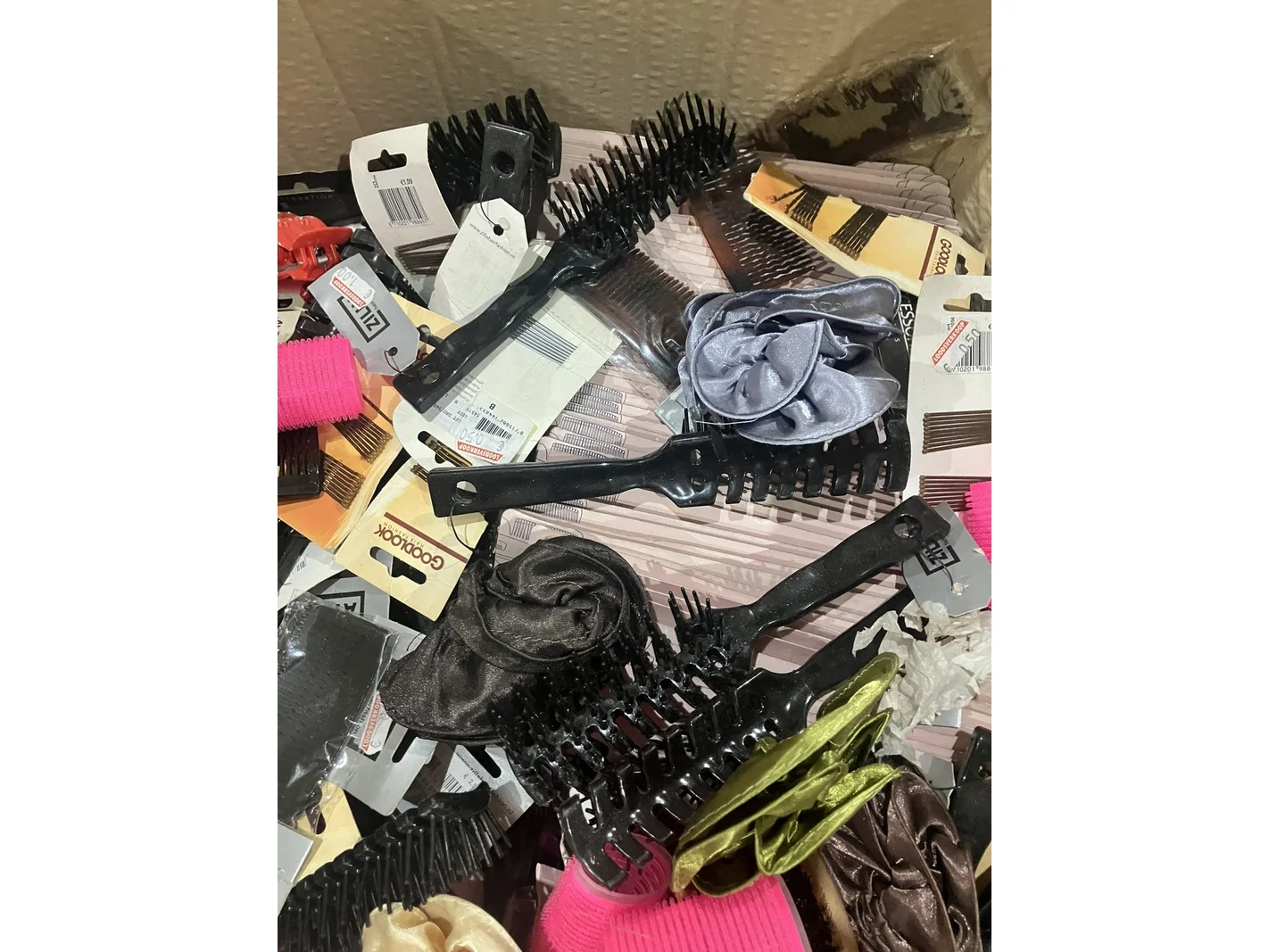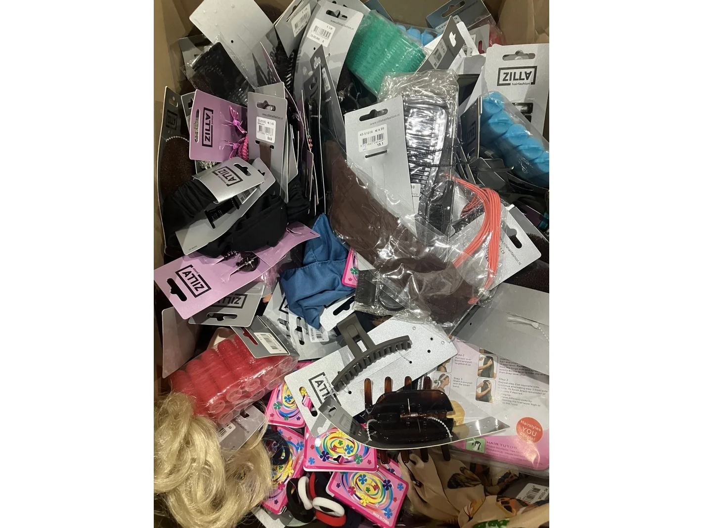 Product: Dozen haar artikelen Conditie: nieuw Specificaties: o.a. Scrunchies, diademen, haarverf en borstels