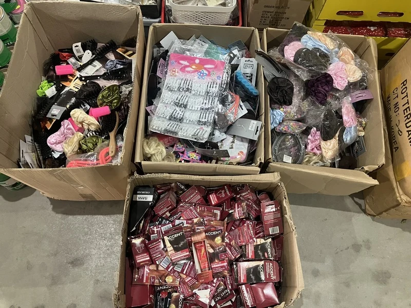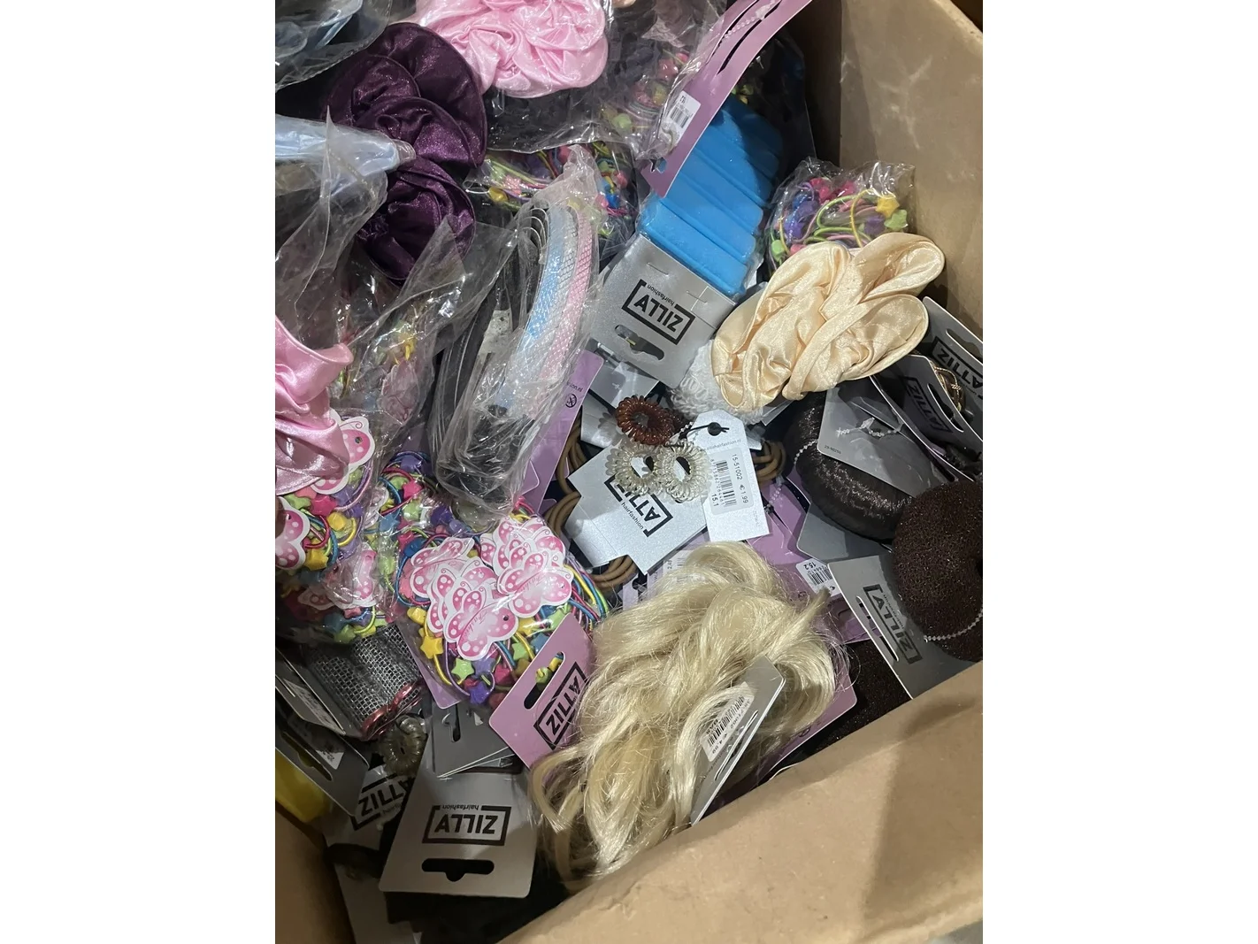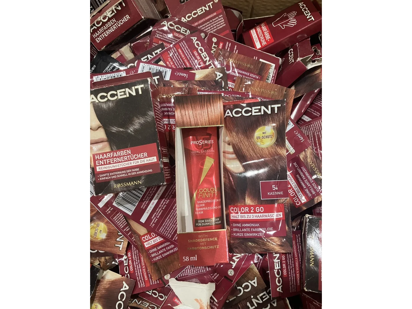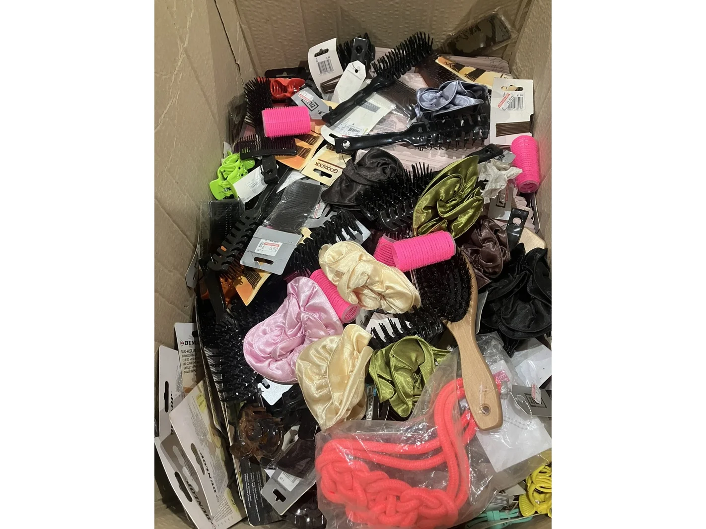 Product: Dozen haar artikelen Conditie: nieuw Specificaties: o.a. Scrunchies, diademen, haarverf en borstels