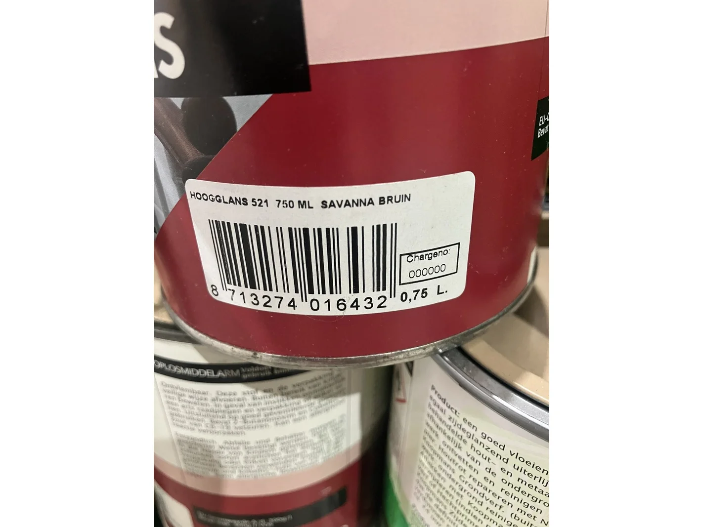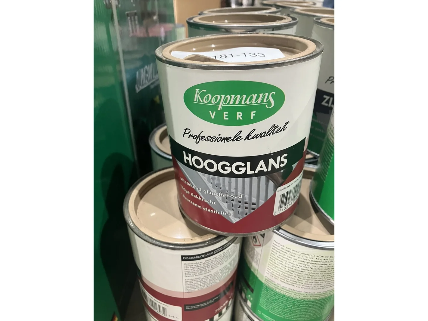 Merk: Koopmans verf Product: Blikken verf Afmeting: 750 ml Conditie: nieuw Specificaties: 15x Hoogglans Savanna Bruin en 30x Zijdeglans Savanna bruin.